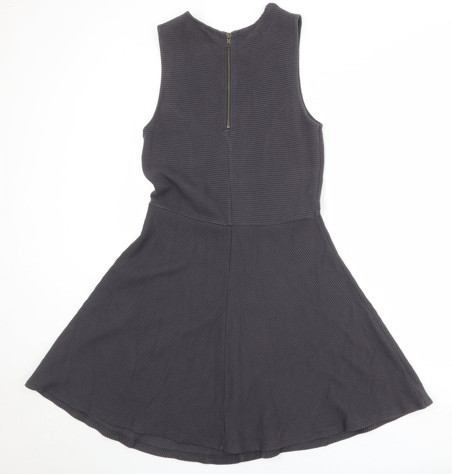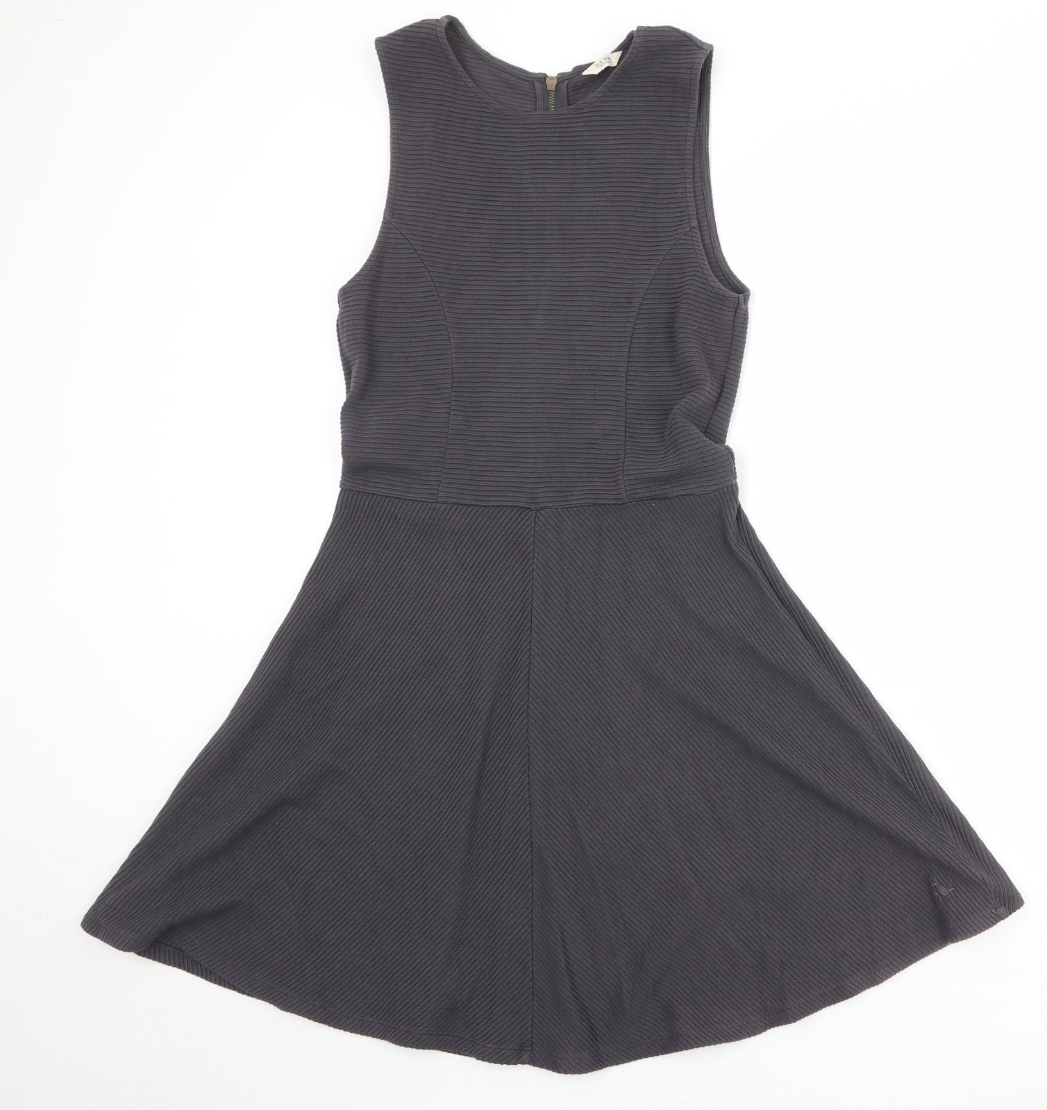 Jack Wills Womens Grey Cotton Skater Dress Size 12 Round Neck Zip