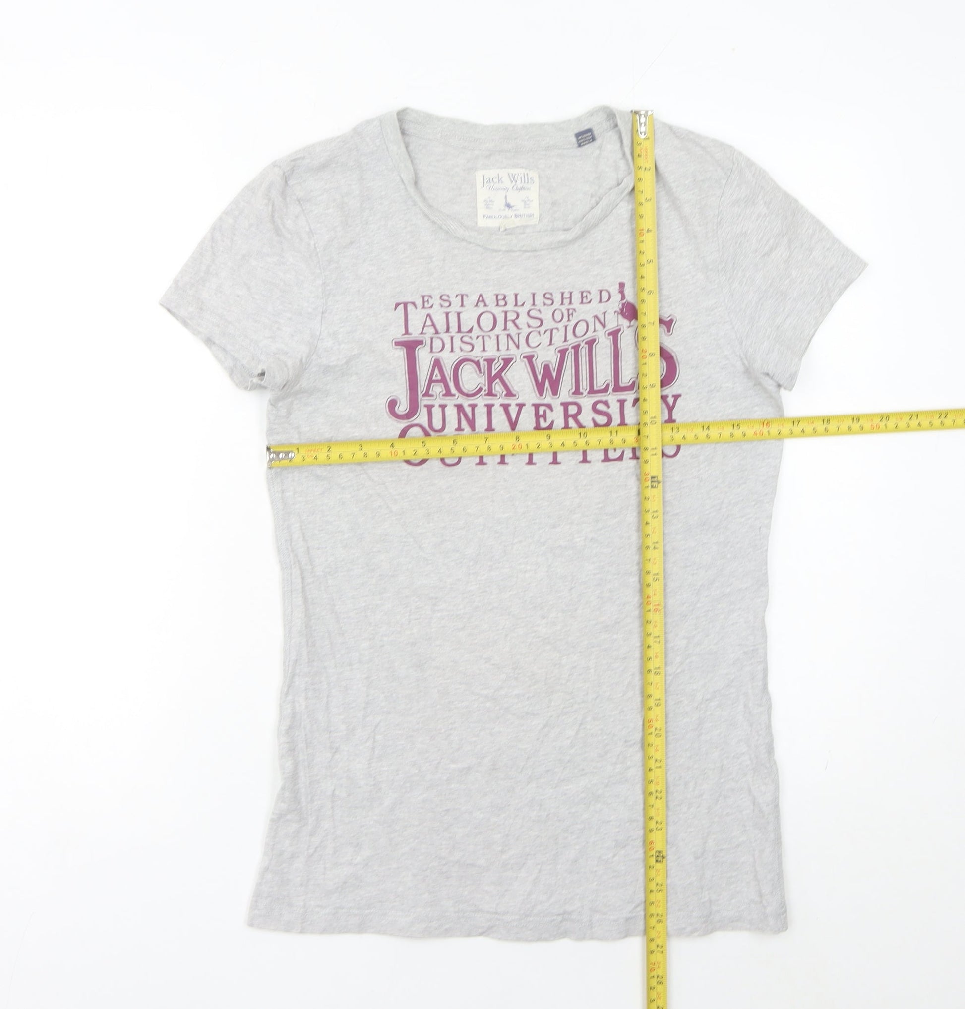 Jack Wills Womens Grey Cotton T-Shirt Size 12 Casual Slim Fit