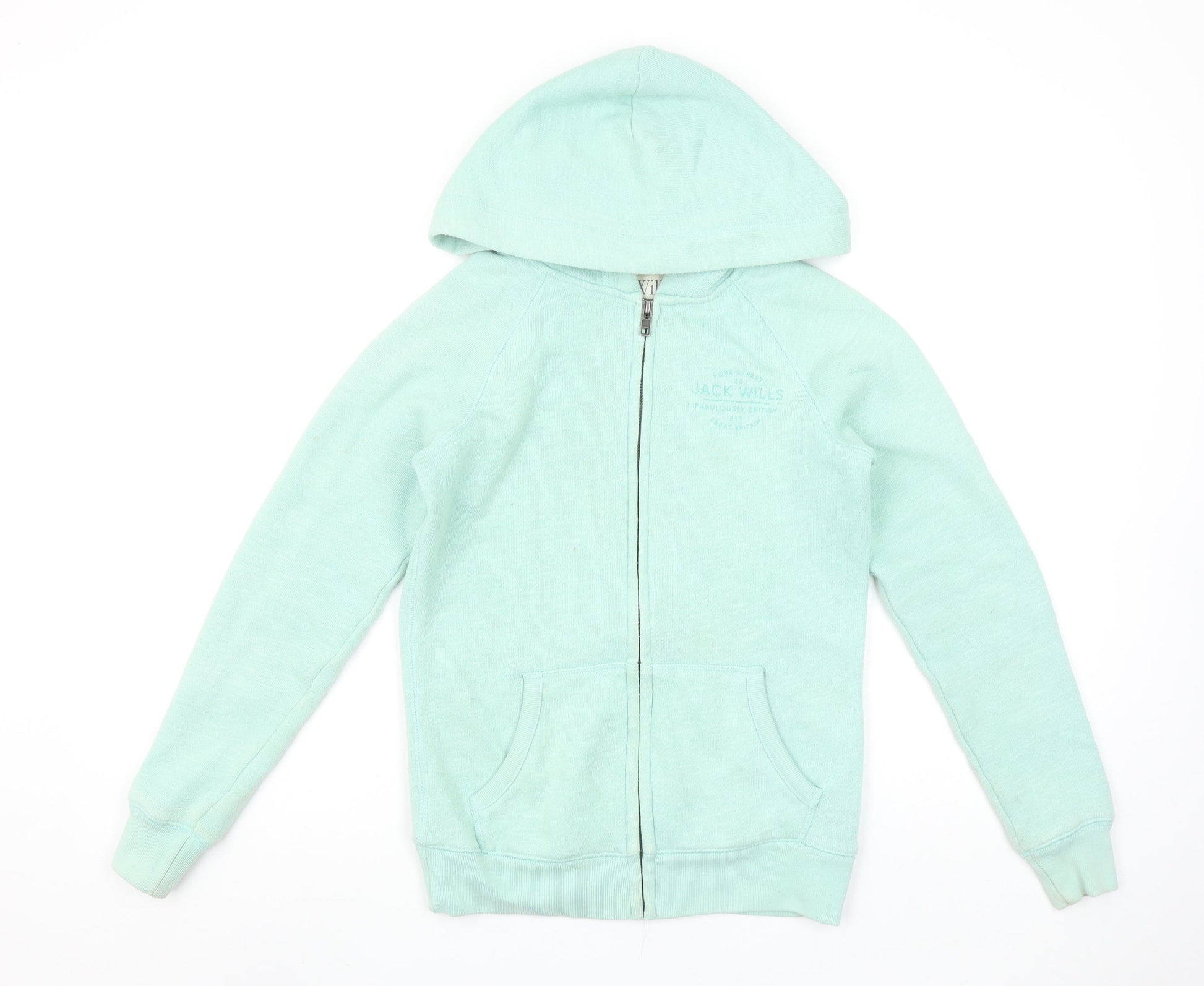 Jack Wills Women's Mint Green Full Zip Hoodie UK 6 Cotton Blend Casual