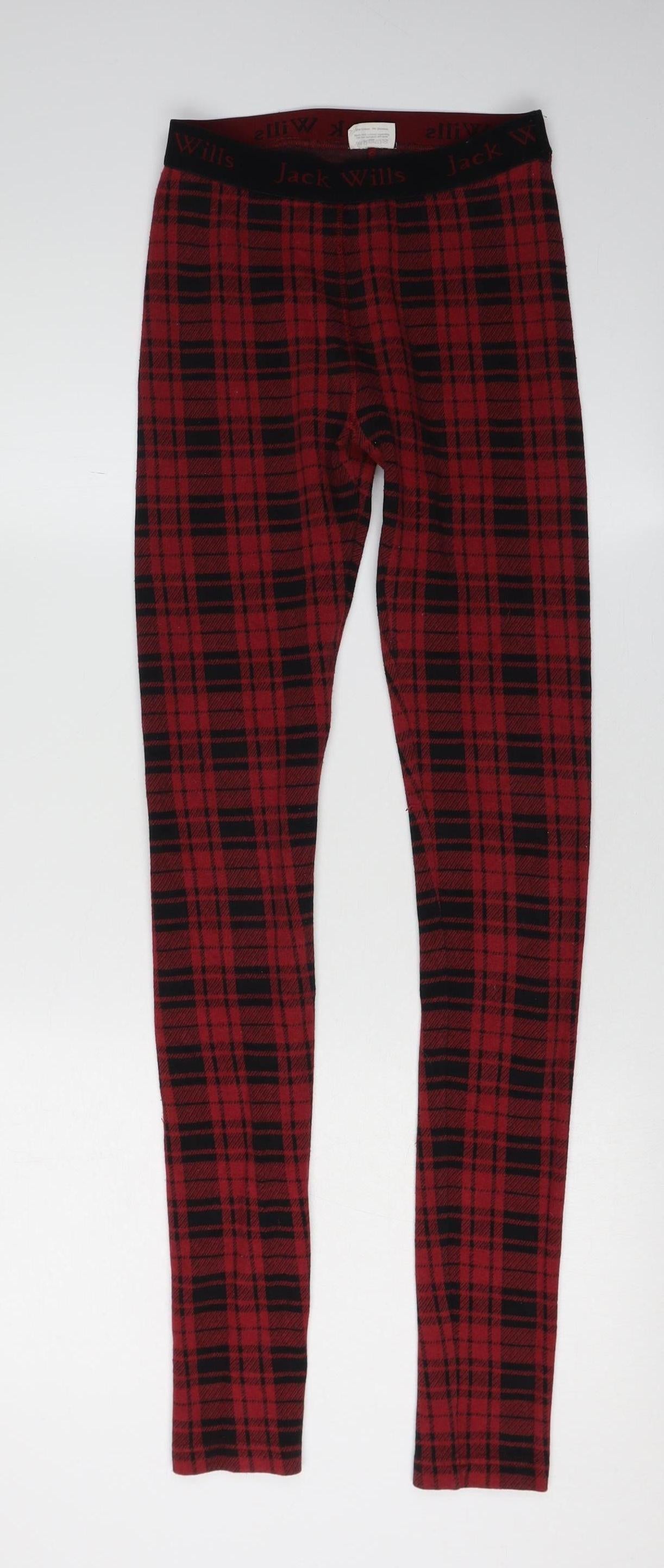 Jack Wills Women's Red Plaid Ankle Leggings Size 6
