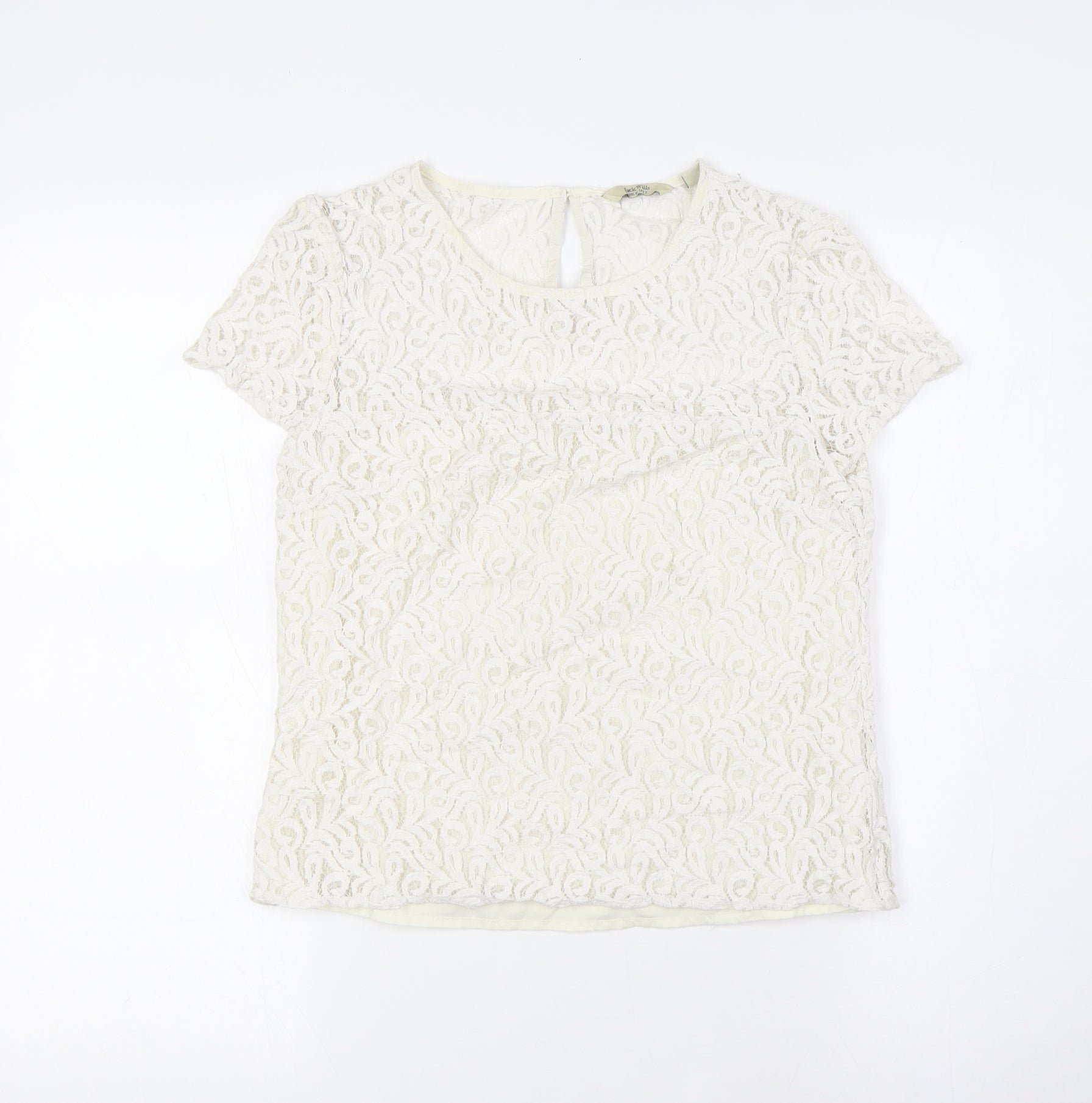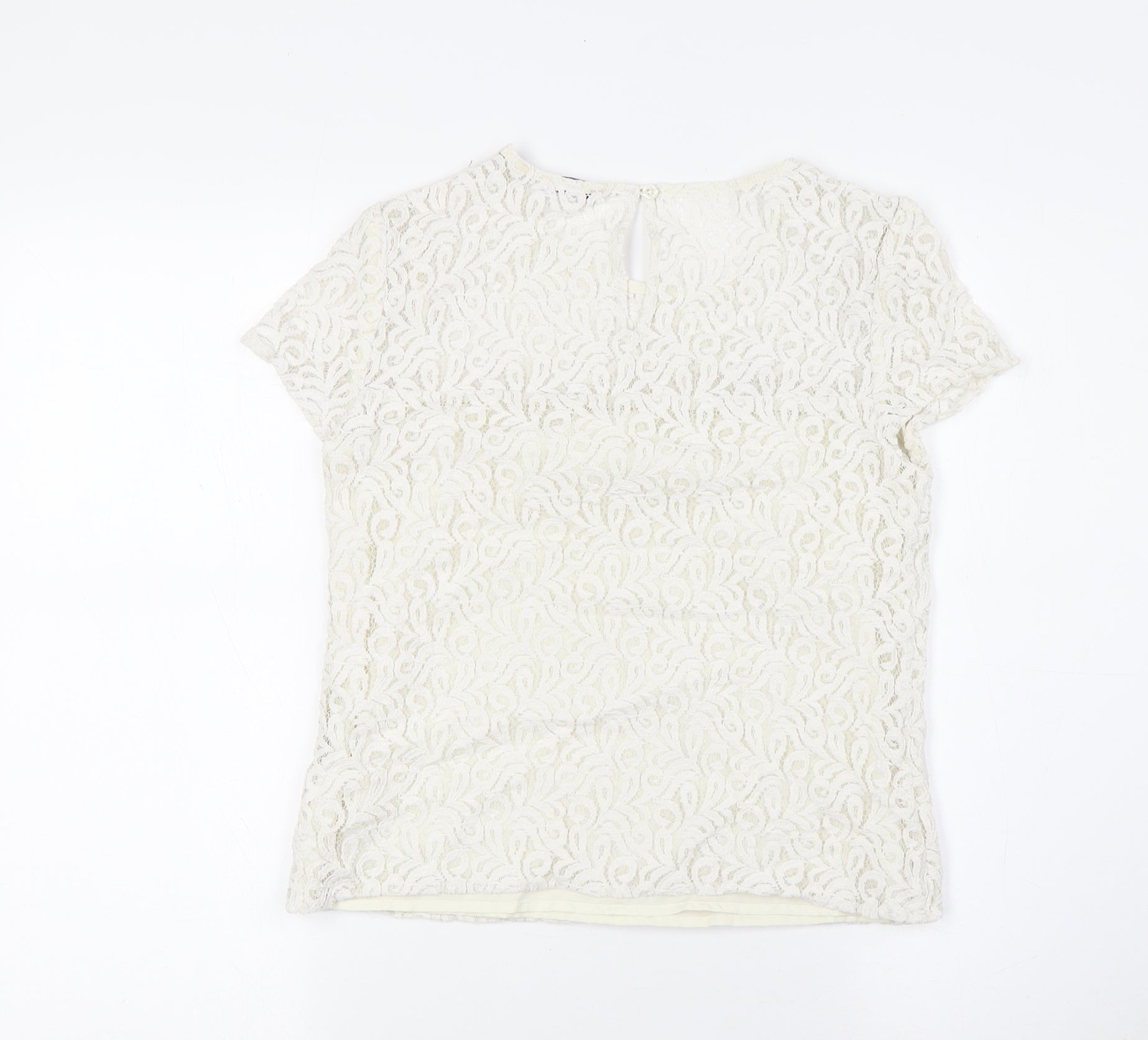 Jack Wills Womens White Cotton Basic Button-Up Size 6 Round Neck - Lace