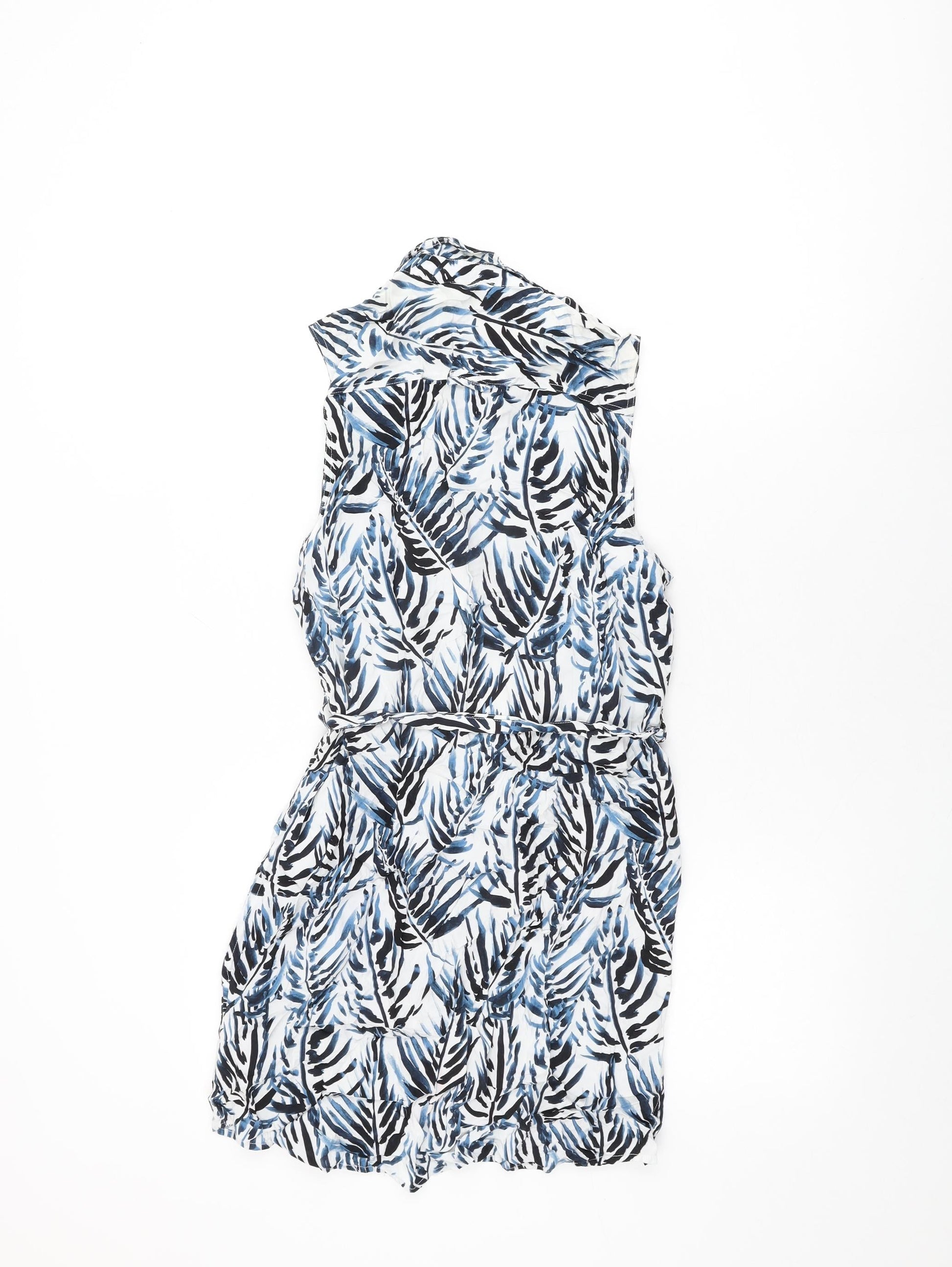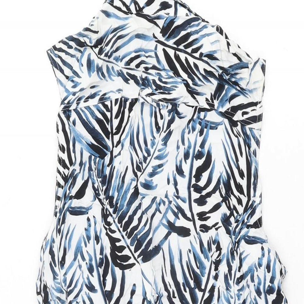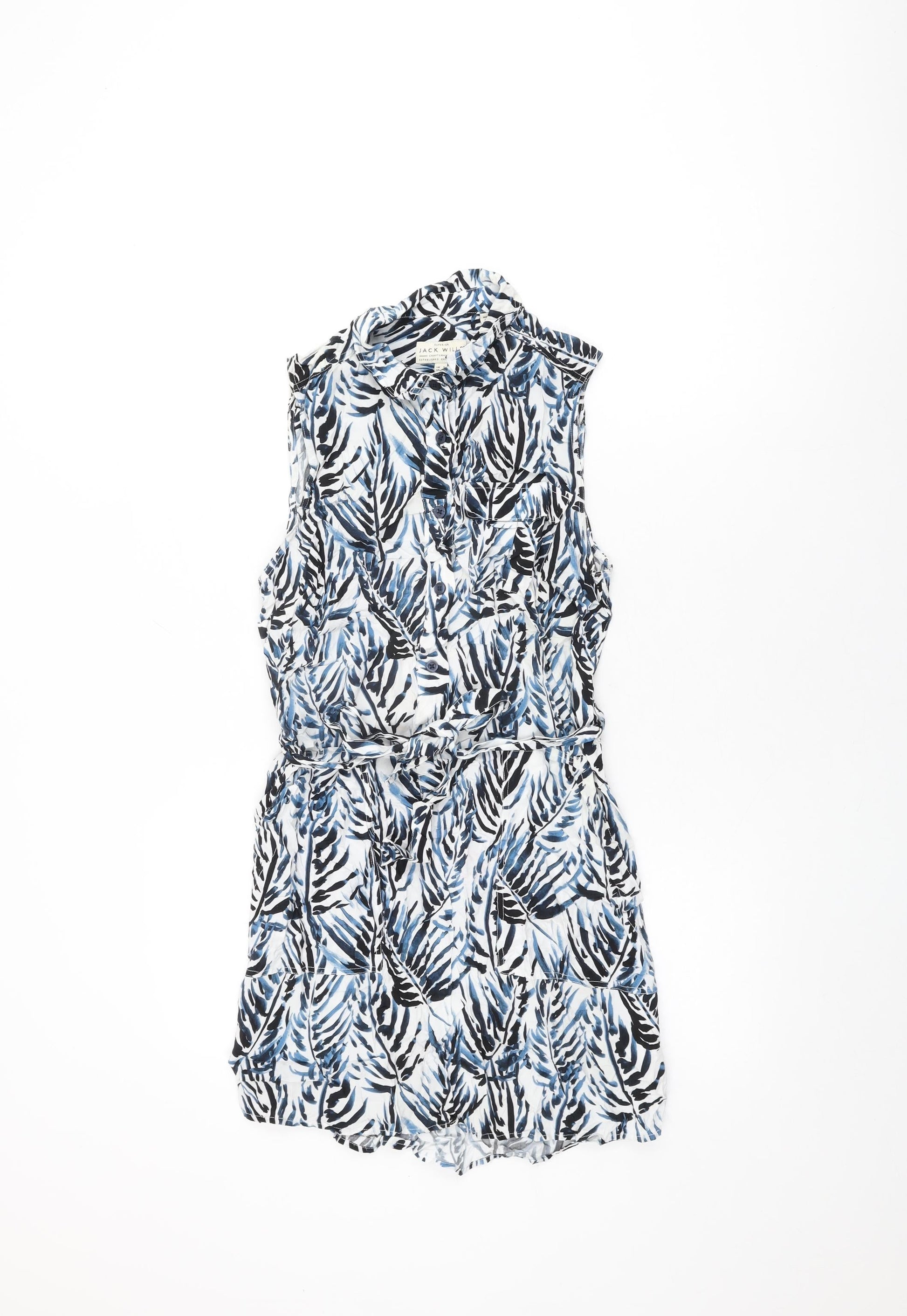 Jack Wills Womens White Geometric Viscose Shift Size 8 Collared Button