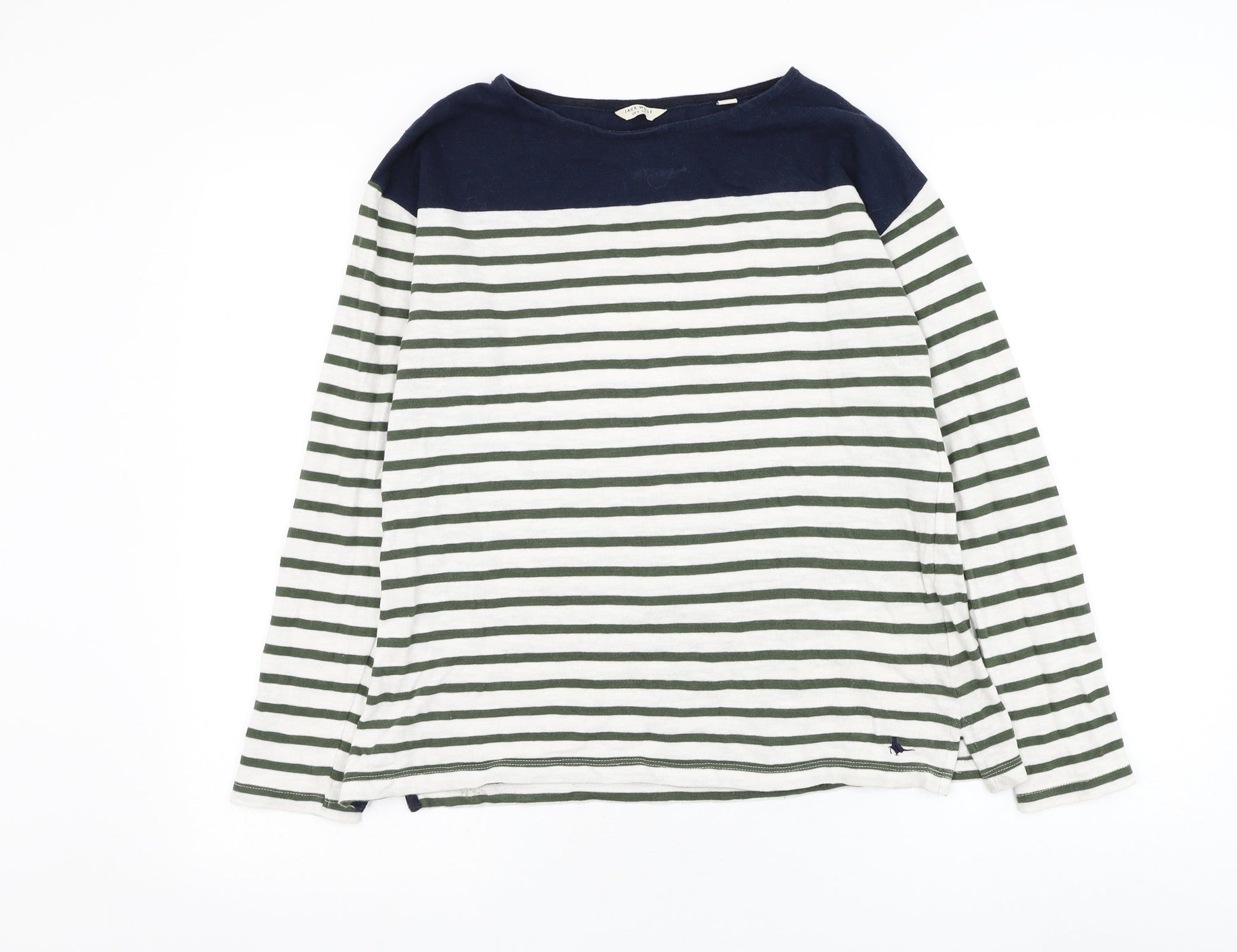 Jack Wills Womens White Round Neck Striped Cotton Pullover Jumper Size 6