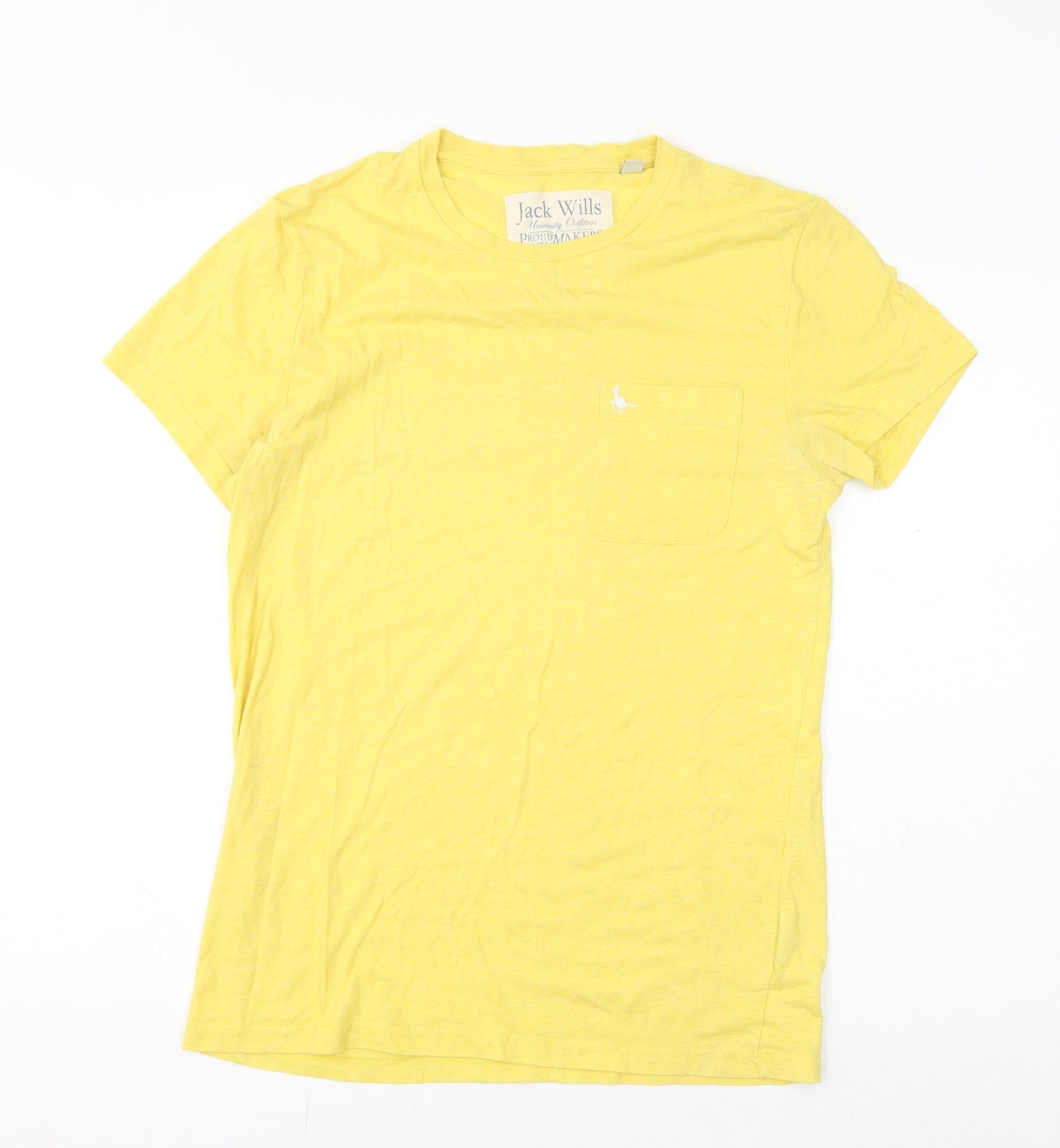Jack Wills Womens Yellow Cotton Basic T-Shirt Size S Round Neck