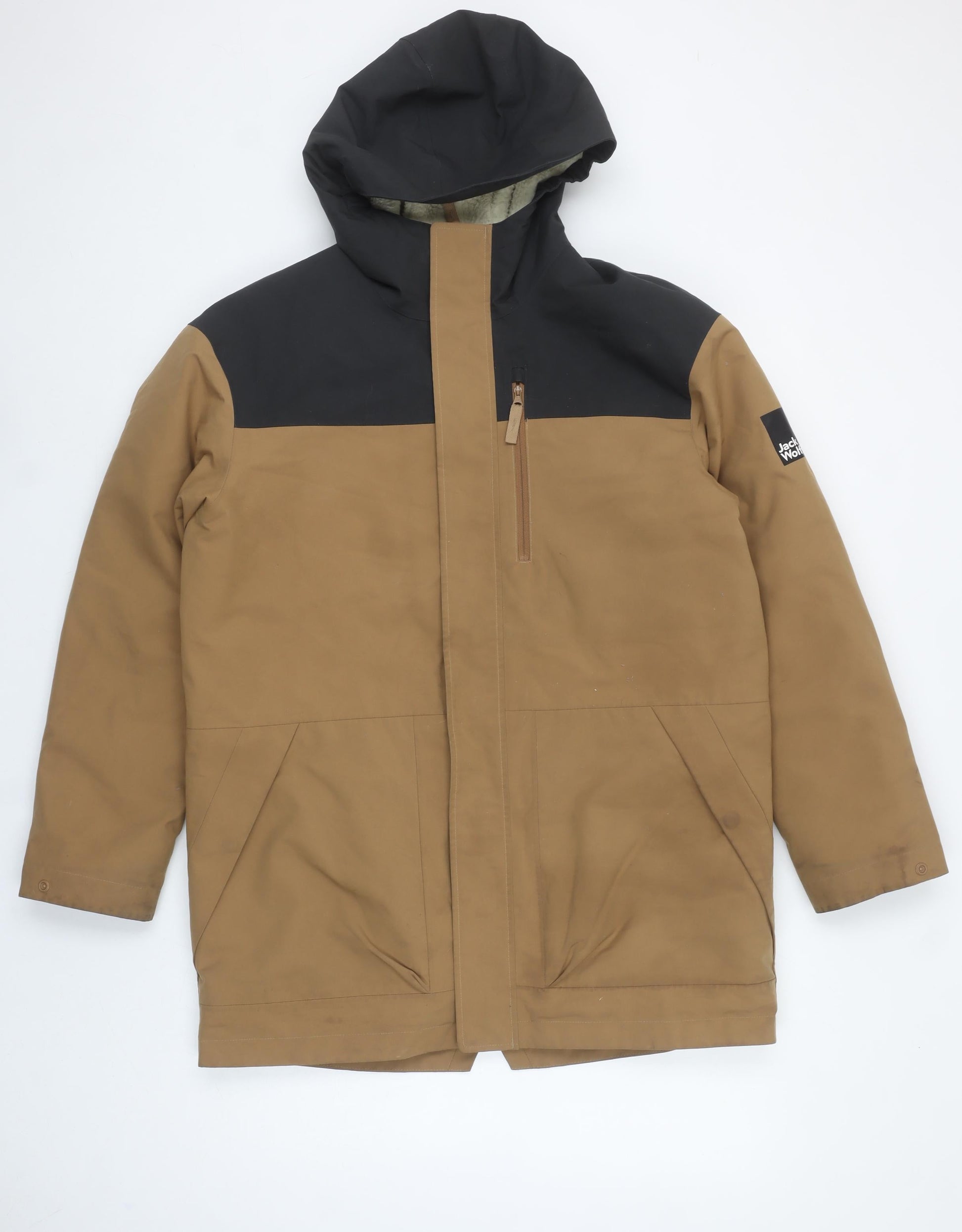 Jack Wolfskin Boys Brown Hooded Parka Coat 13-14 Years Water Repellent