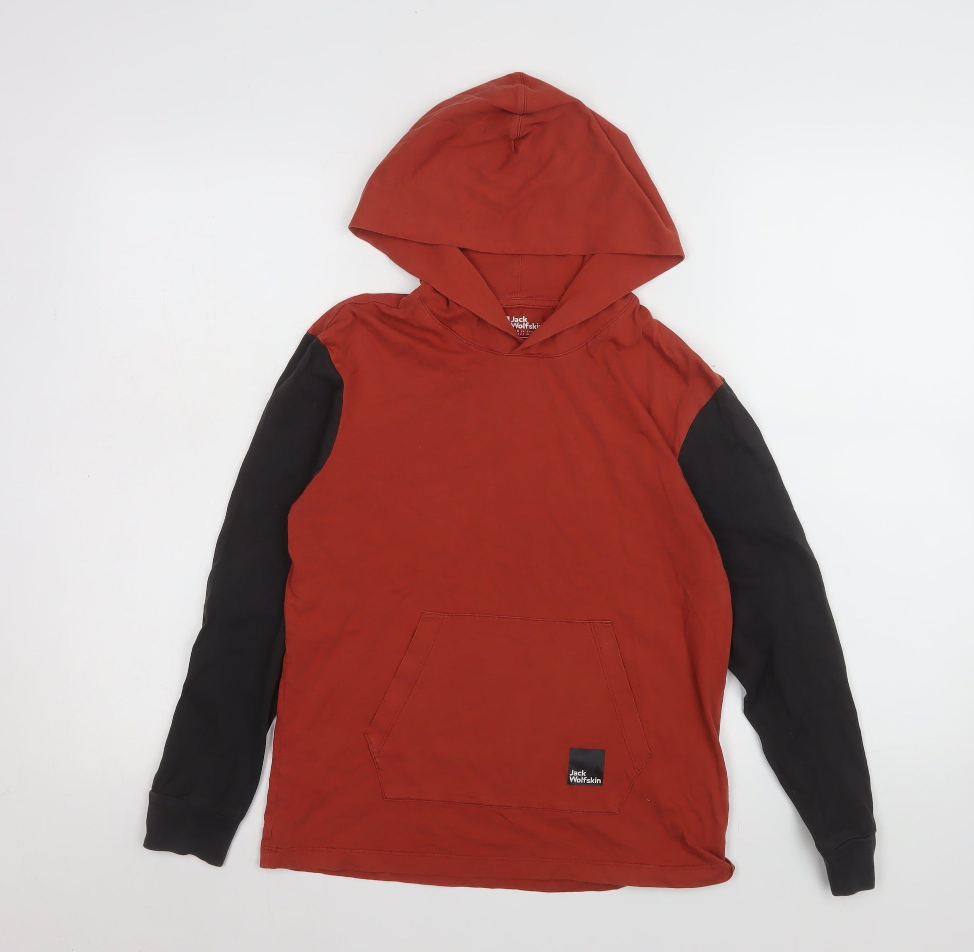 Jack Wolfskin Boys Red & Black Pullover Hoodie Size 11-12 Years Cotton