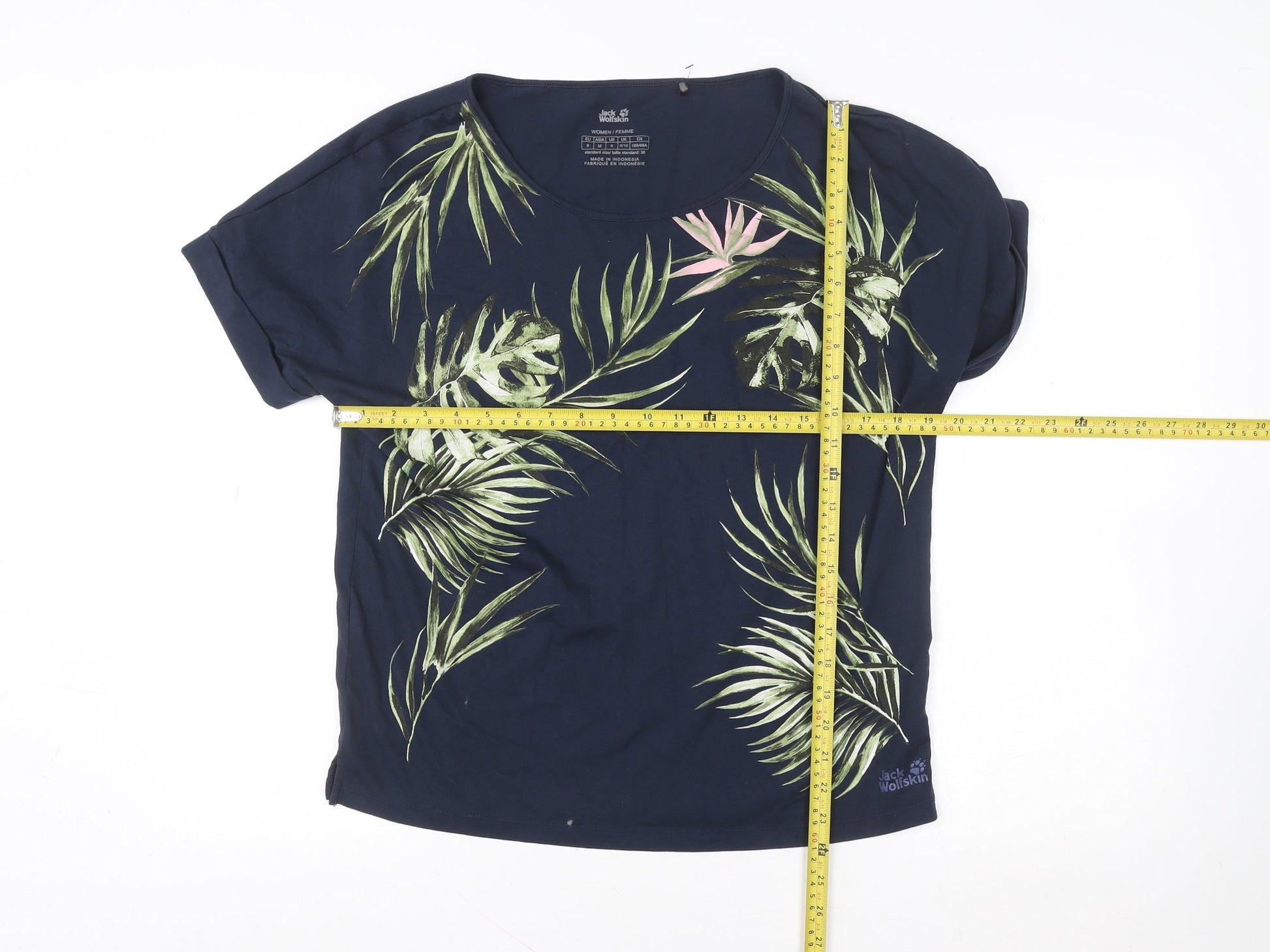 Womens UK Size S Jack Wolfskin Blue Cotton Blend T-Shirt