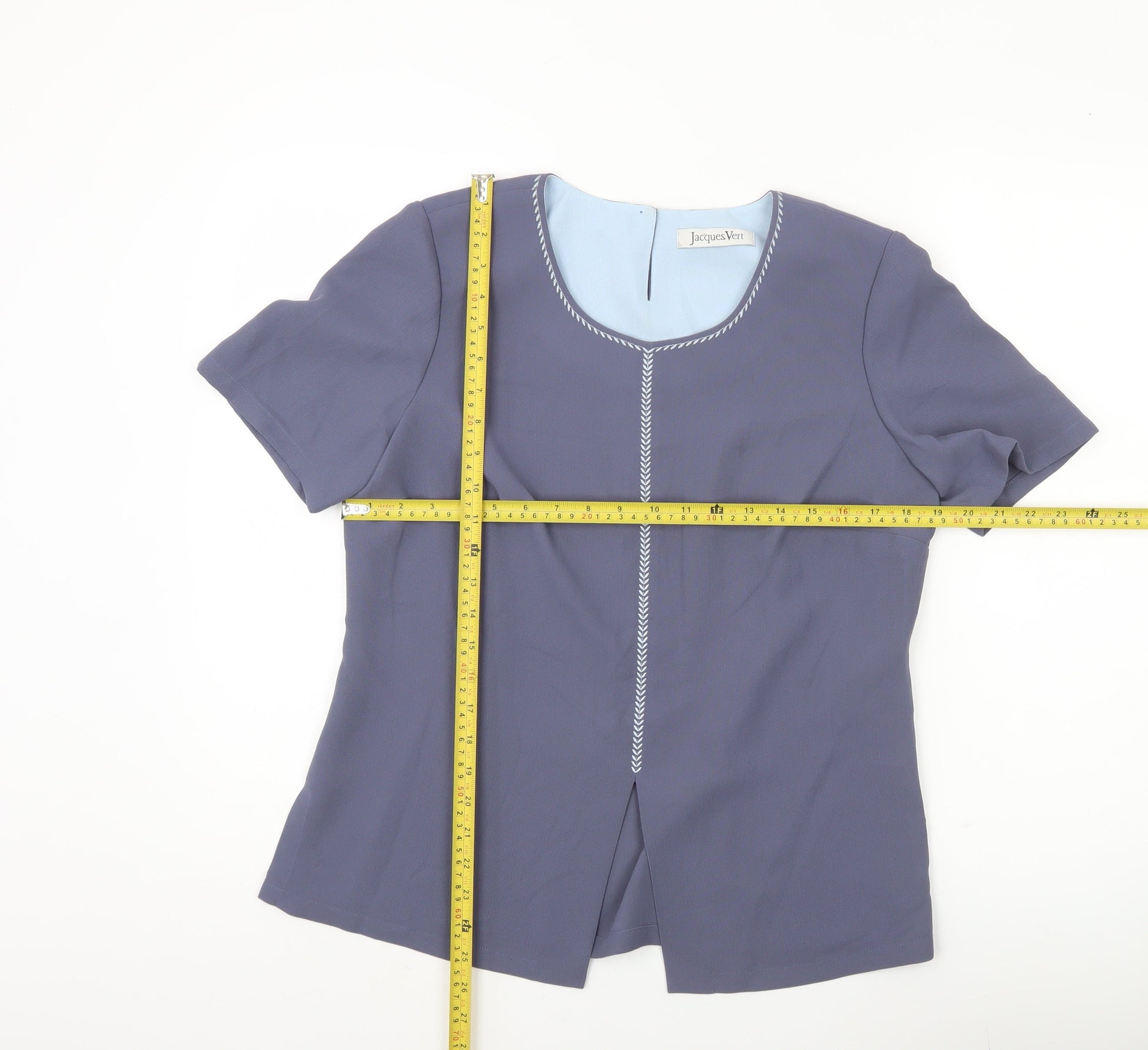 Jacques Vert Women Blue Blouse Size 12 Short Sleeve Scoop Neck