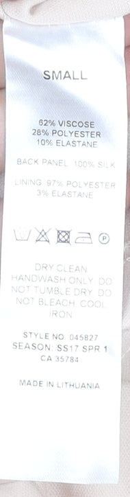 - Material Breakdown: 62% Viscose 28% Polyester 10% Elastane 100% Silk (back panel)