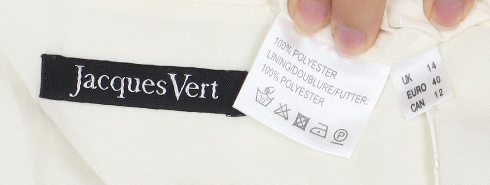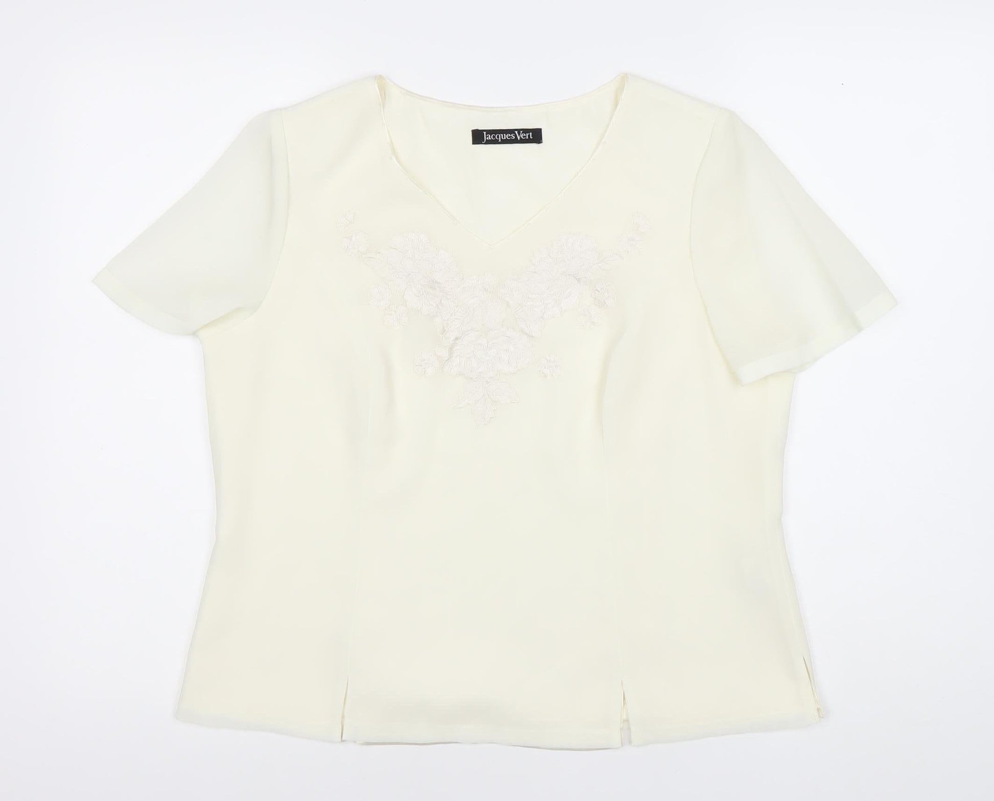 Jacques Vert Women Ivory Embroidered Blouse Size 14 V-Neck Top