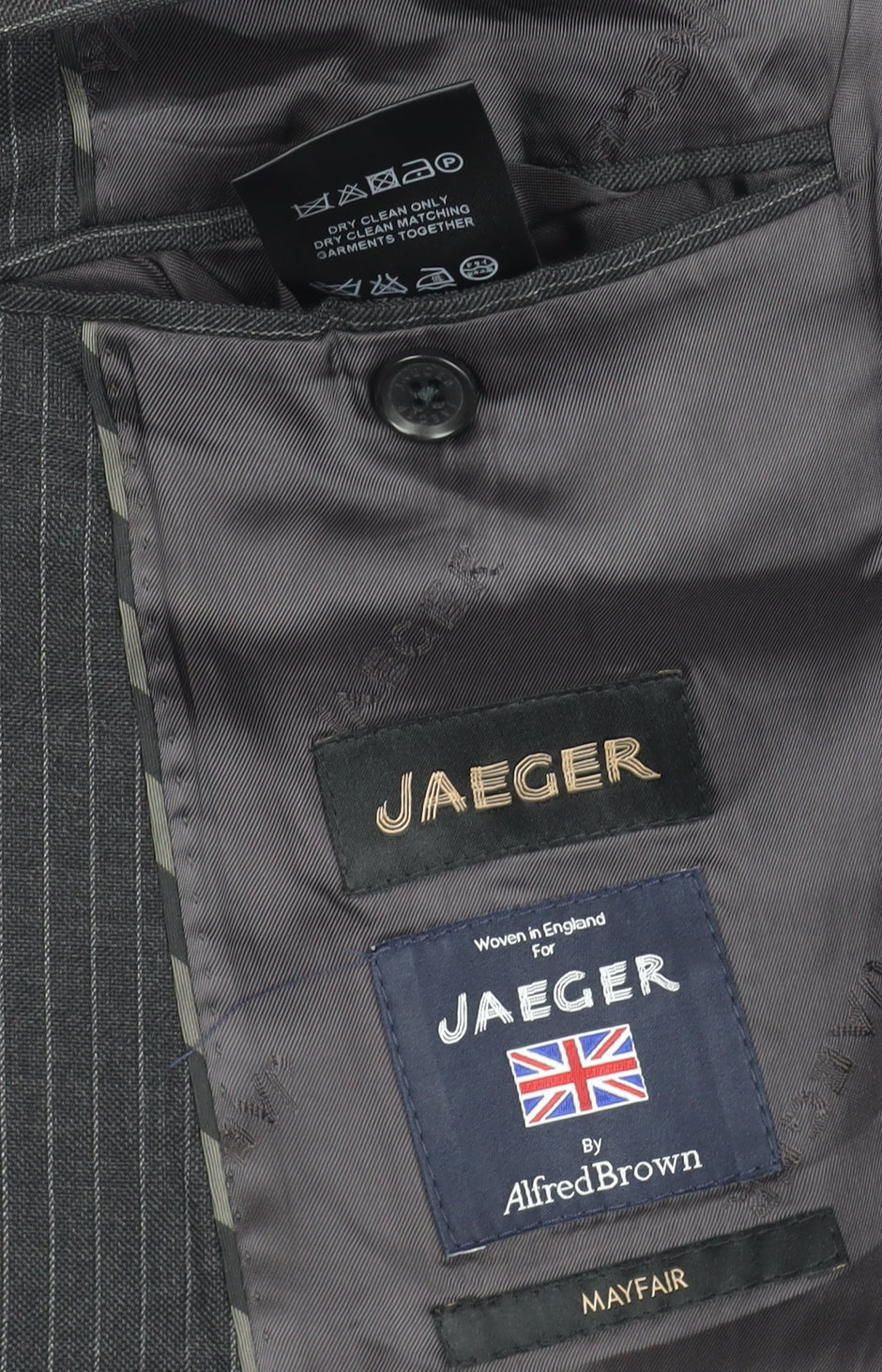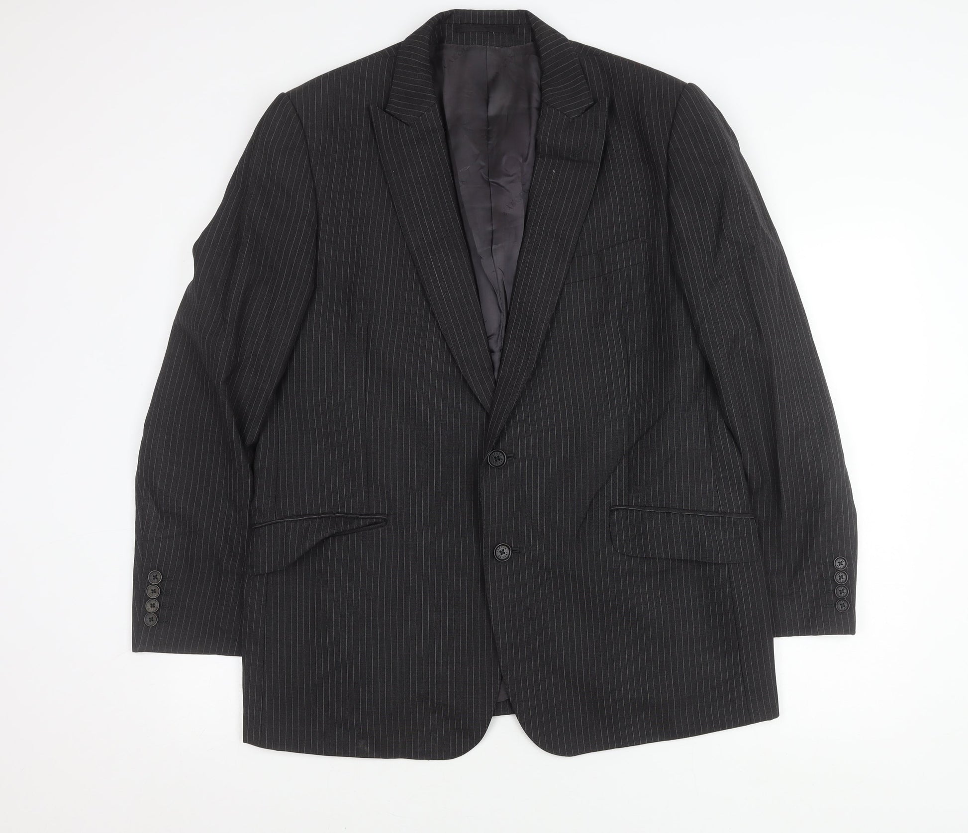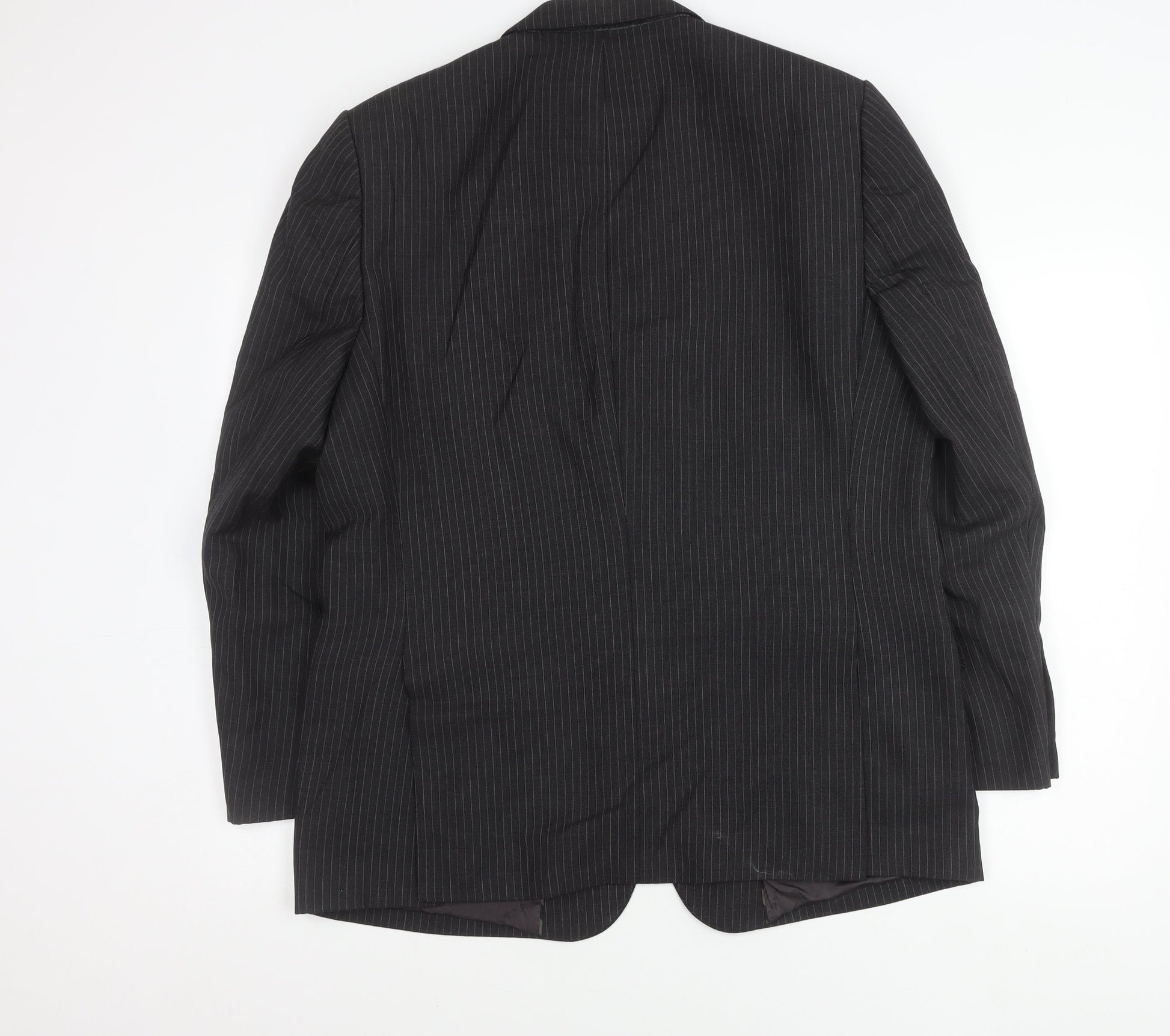 Jaeger Men’s Black Pinstripe Wool Blazer Jacket 44R