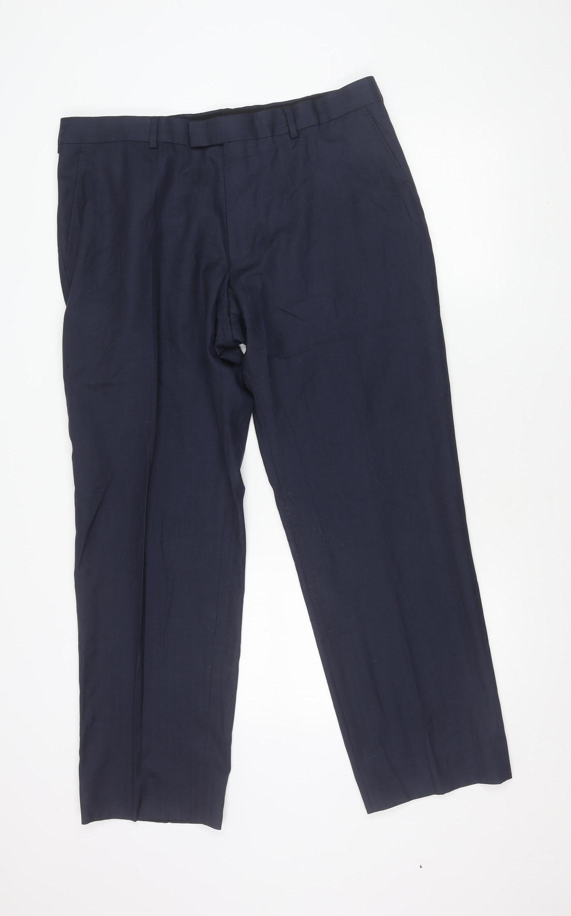 Jaeger Men’s Blue Wool Blend Dress Pants 36S Regular Fit Smart Trousers