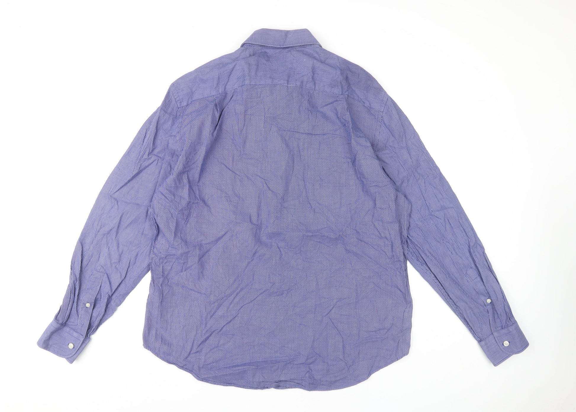 Jaeger Men’s Purple Geometric Cotton Regular Fit Dress Shirt XL 17in