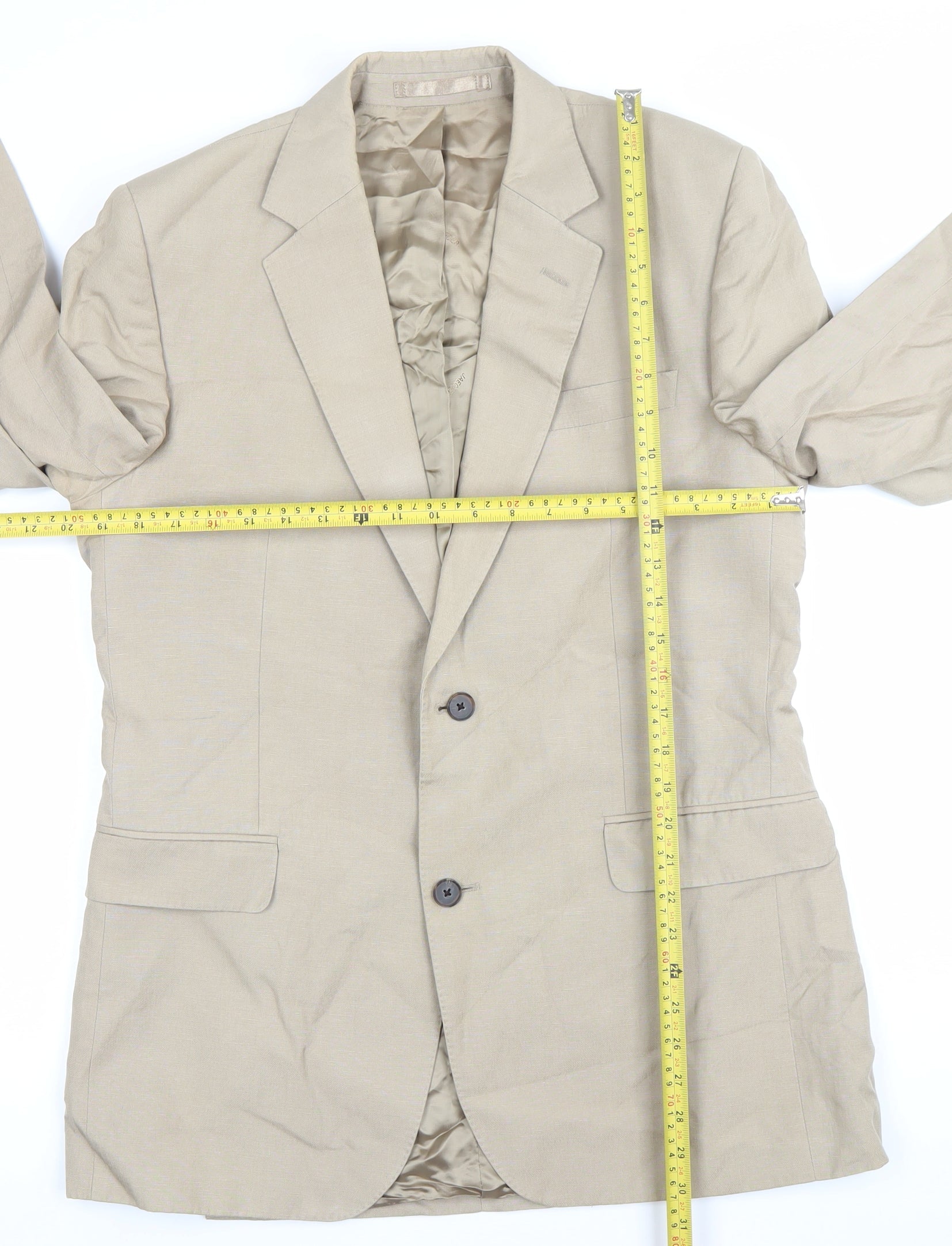 Jaeger Men's Beige Linen Silk Blazer Jacket 40R Regular Fit