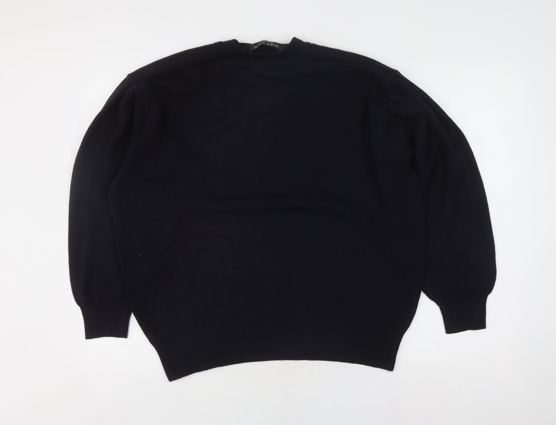 Jaeger Men's Black L Pullover Jumper, Wool Acrylic, Crew Neck