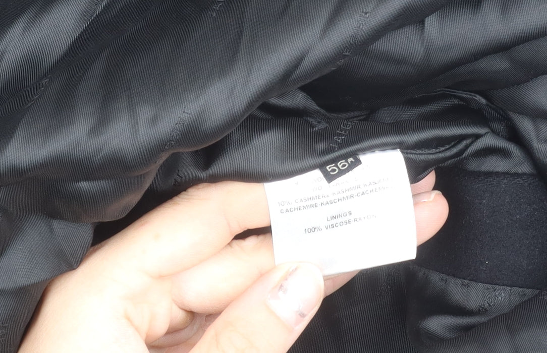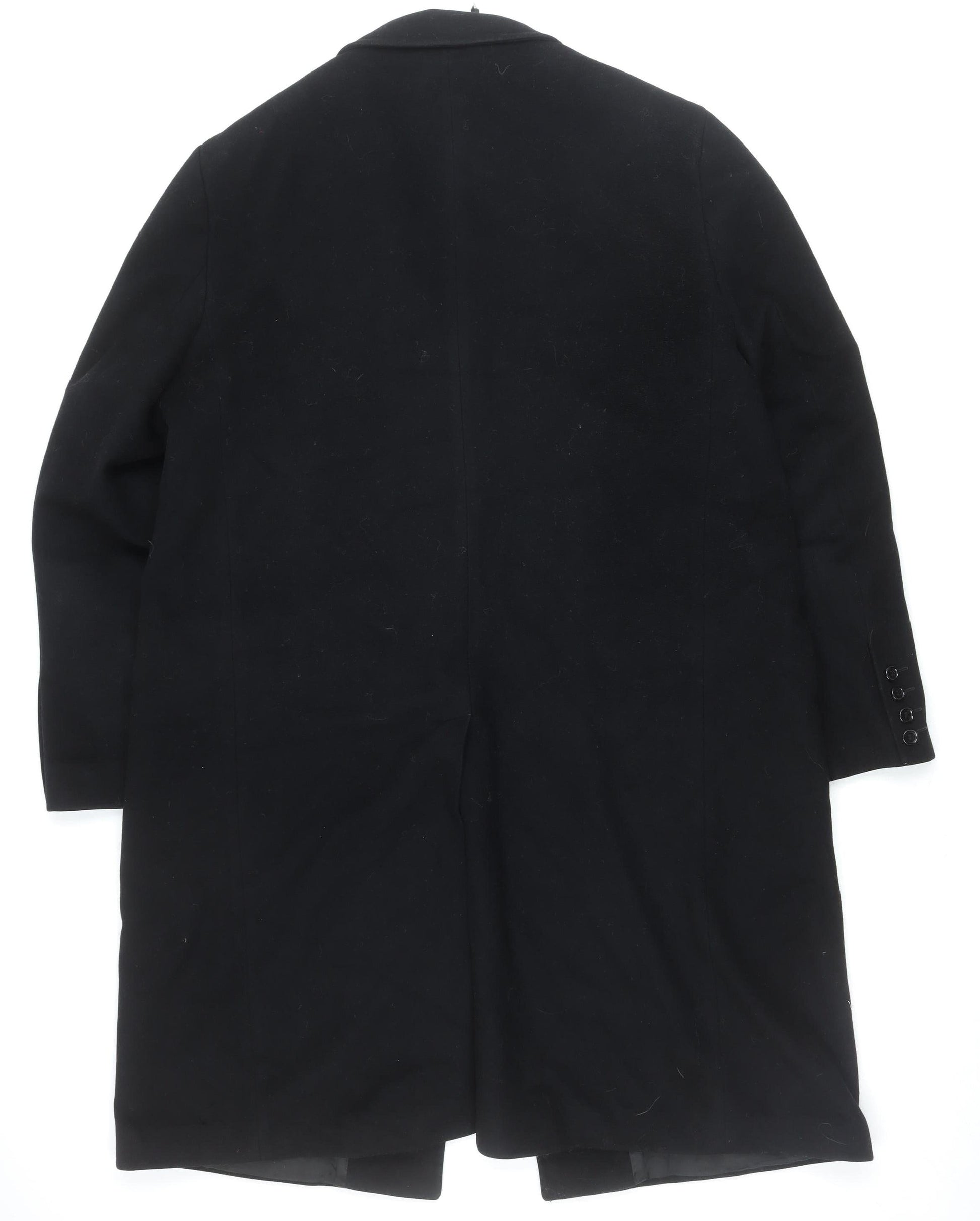 Jaeger Men's Black Wool Cashmere Long Overcoat Size 56R Classic Business
