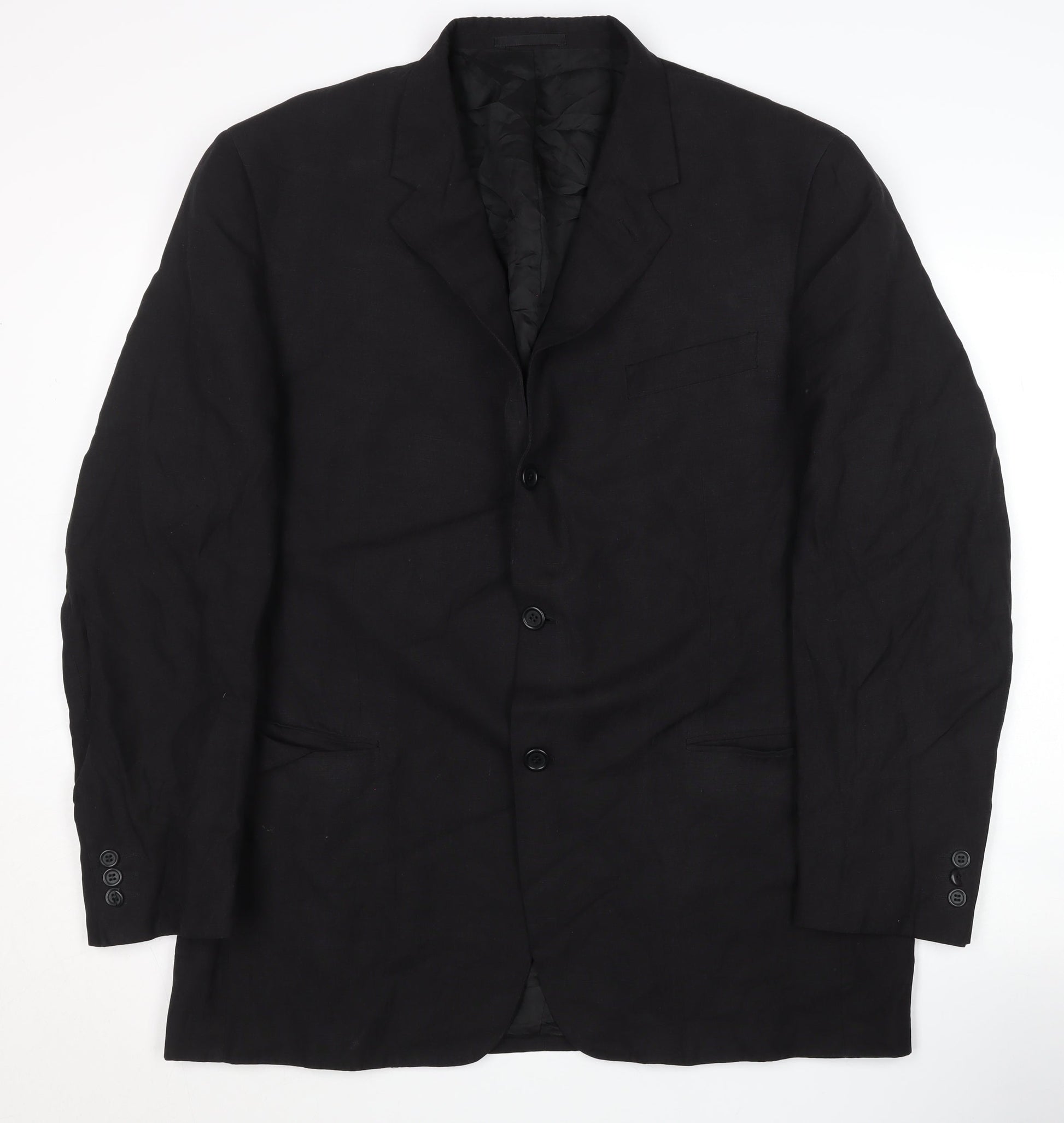 Jaeger Men's Black Wool Long Blazer - Size 54L, Formal Jacket