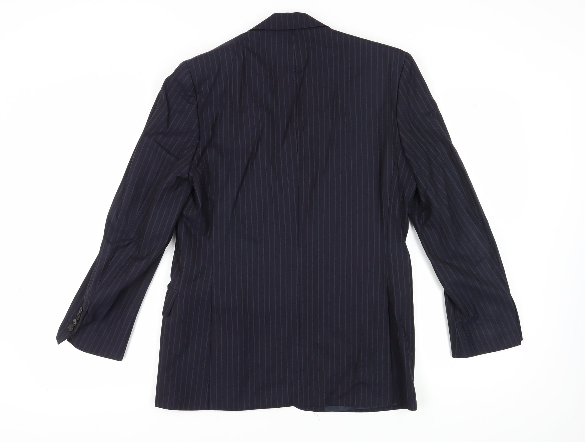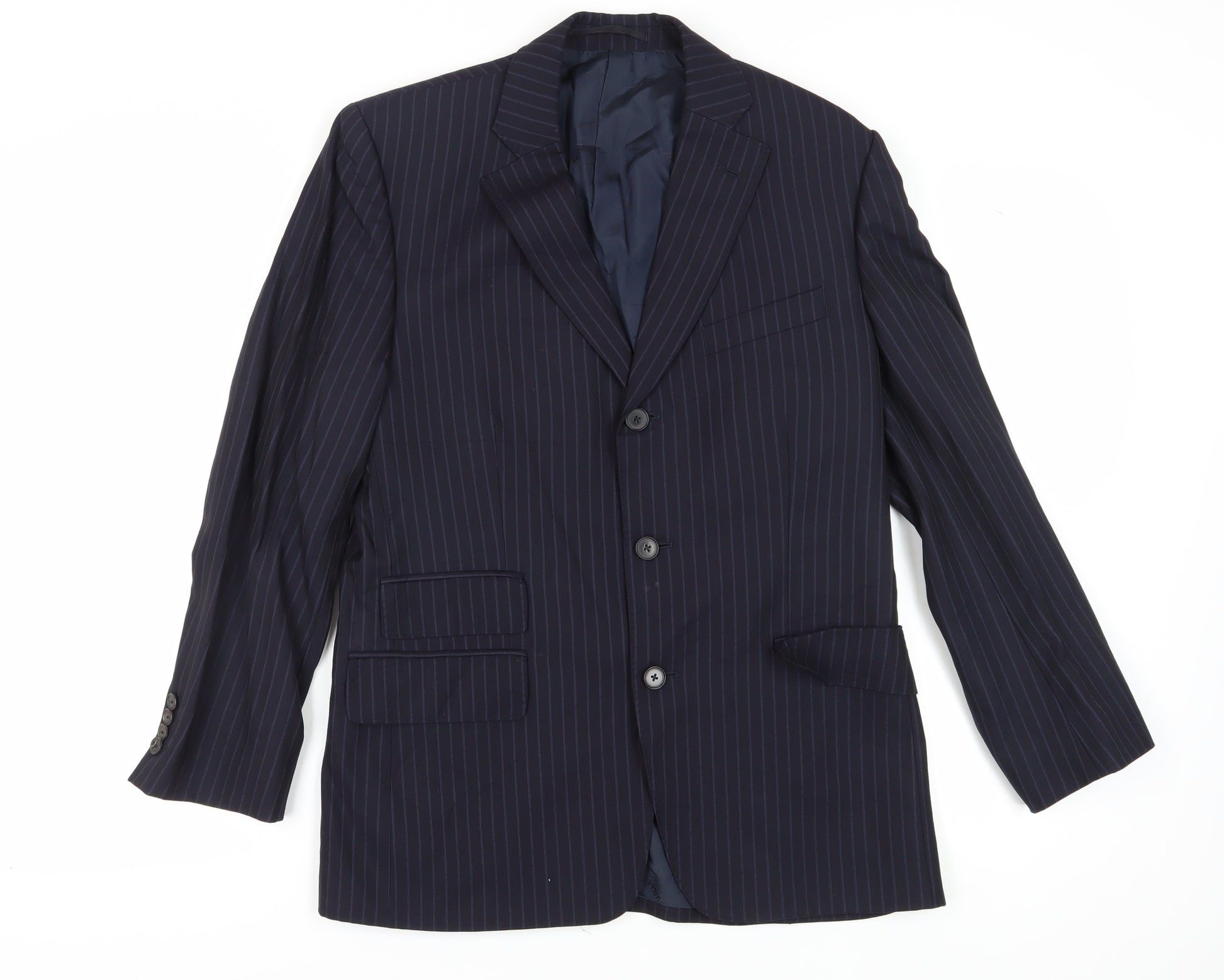 Jaeger Men's Blue 38S Suit Jacket, Striped Pattern