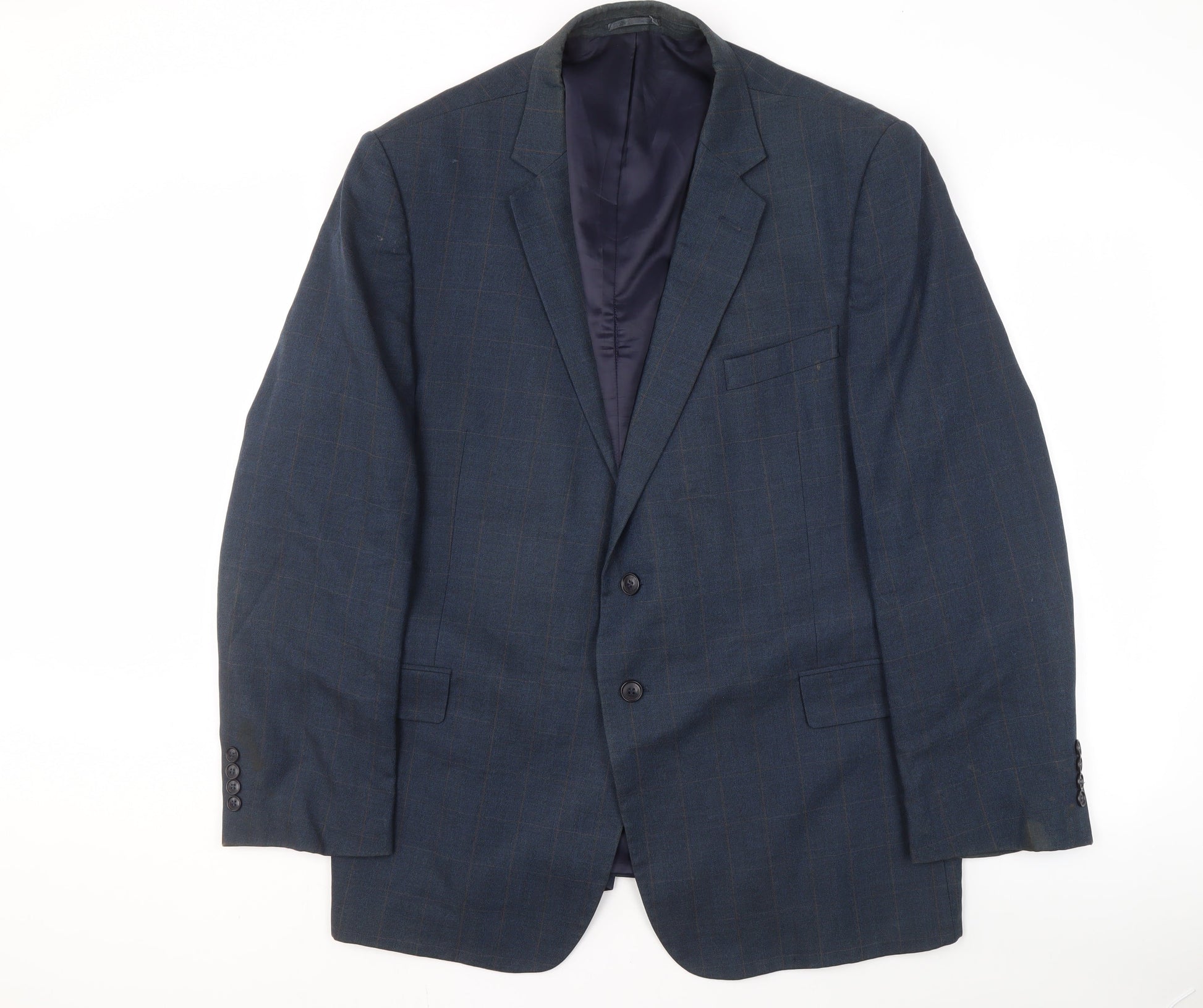 Jaeger Men's Blue Check Suit Jacket 48R Regular Fit