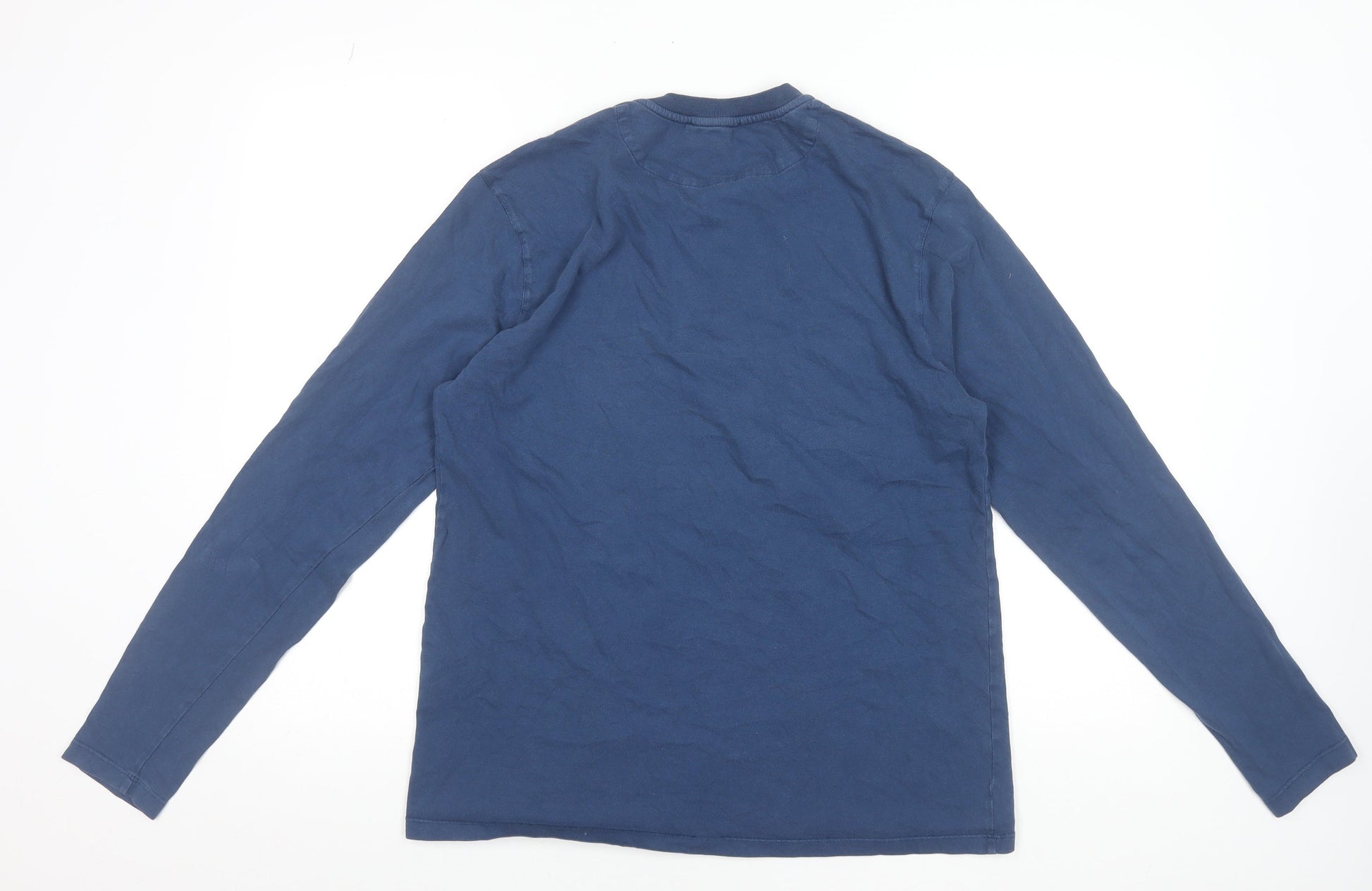 Jaeger Men's Blue Long Sleeve Henley Cotton T-Shirt Size M