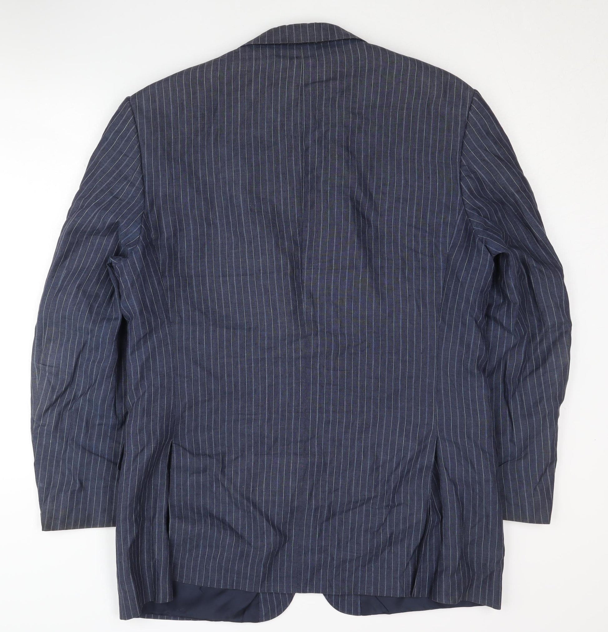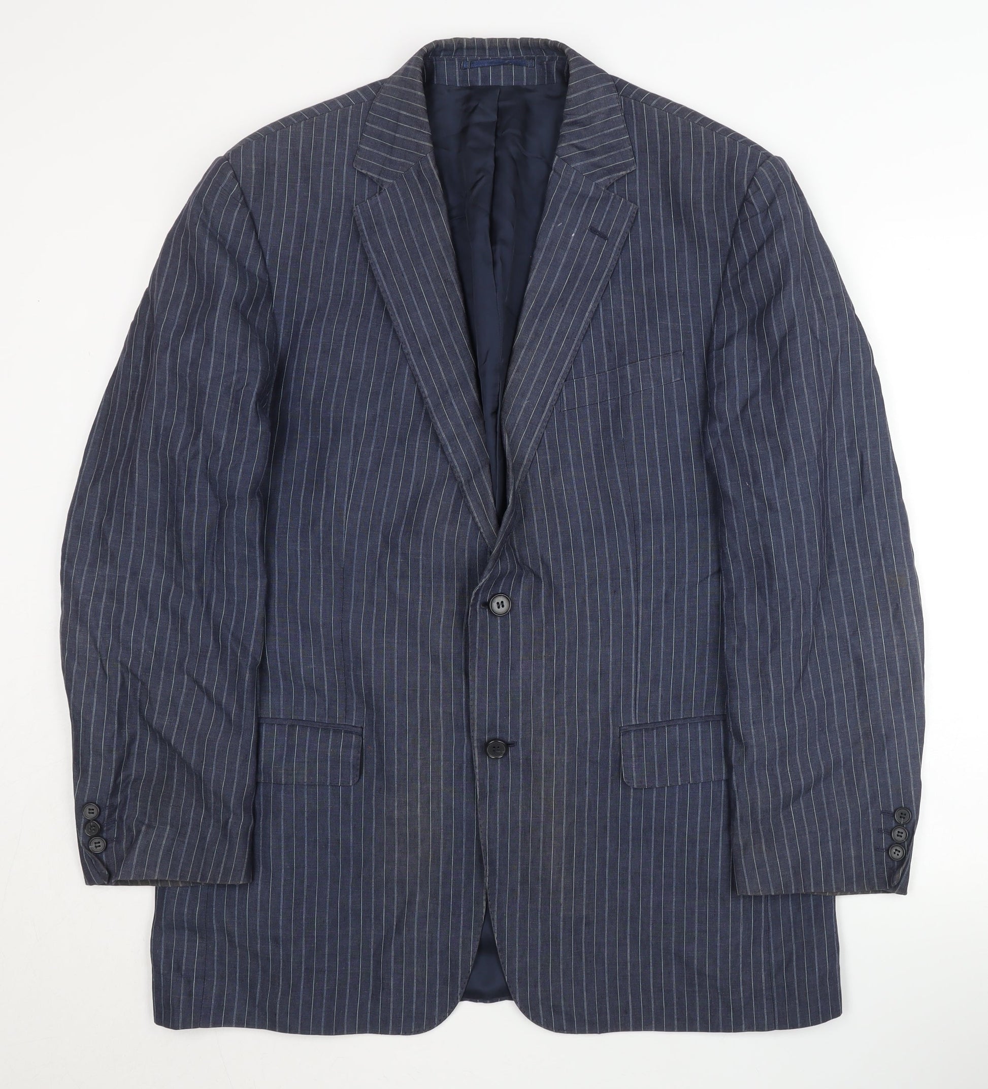 Jaeger Men's Blue Striped Linen Blazer 42R Jacket