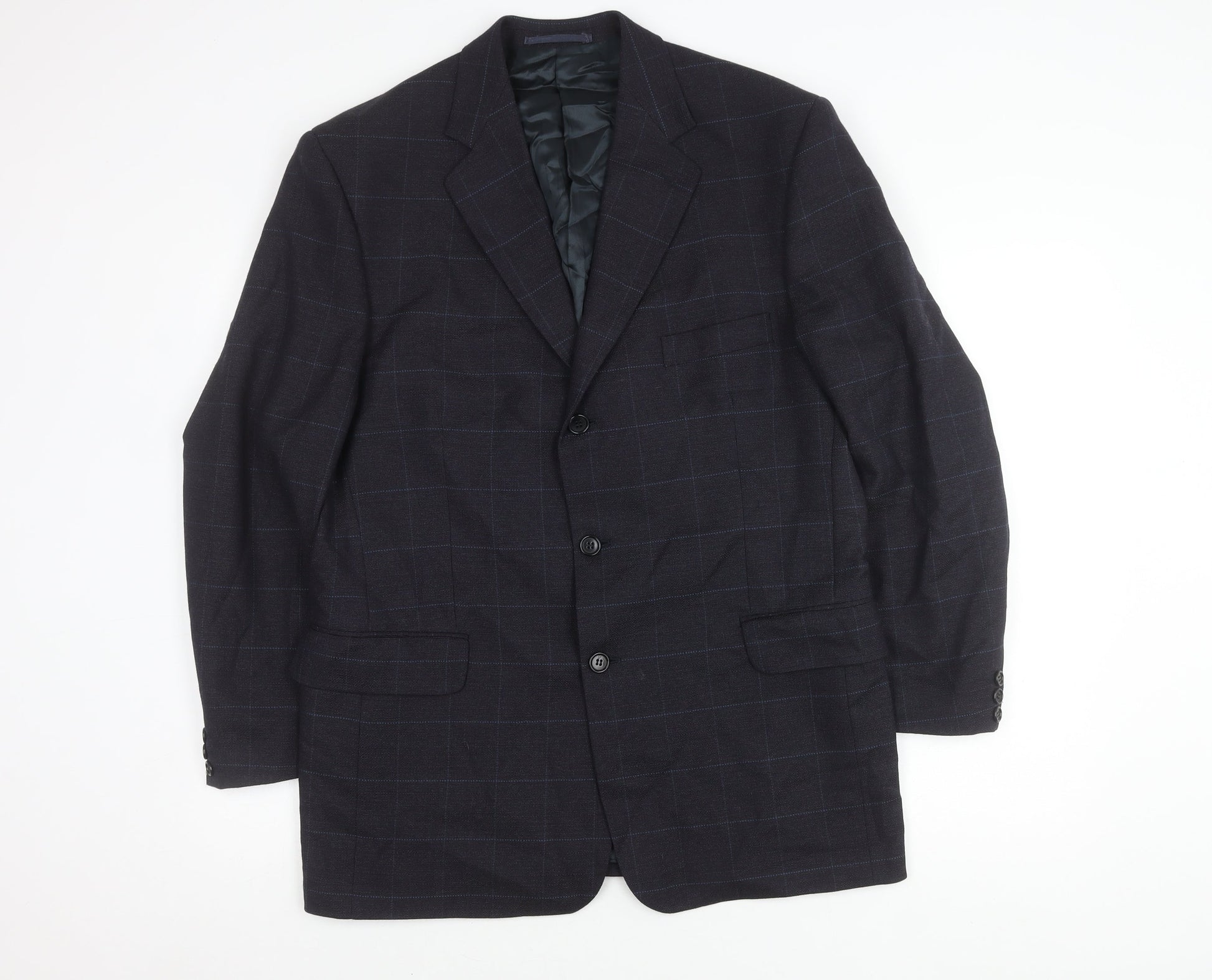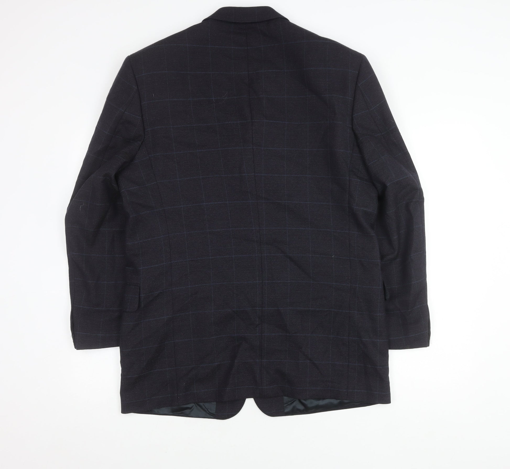 Jaeger Men's Blue Wool Check Blazer 52R Classic Fit