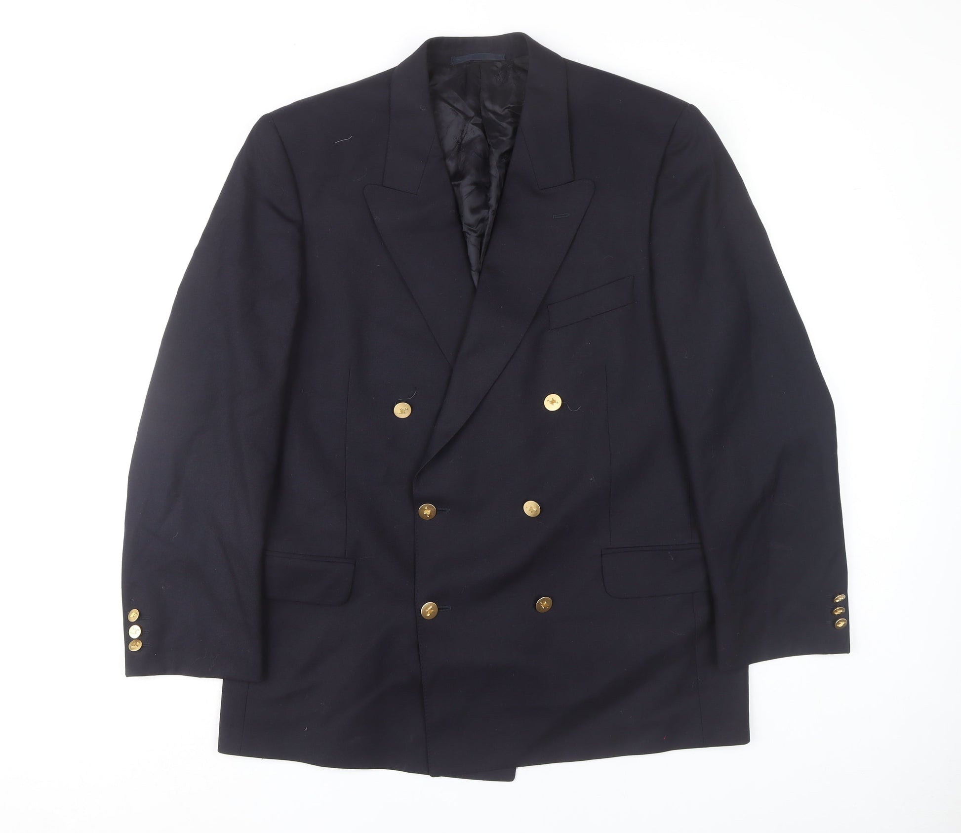 Jaeger Men's Blue Wool Double-Breasted Blazer Jacket 52R