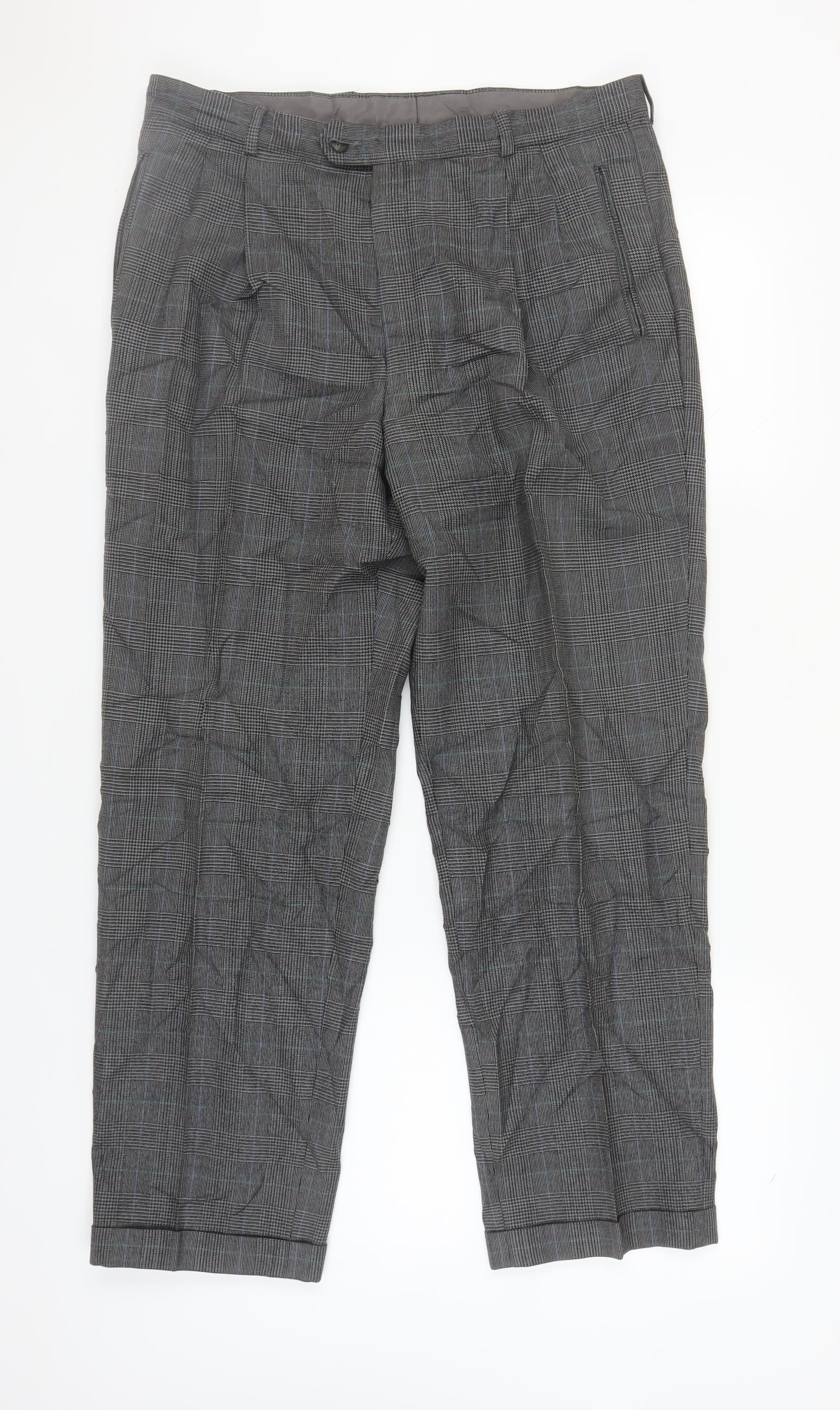 Jaeger Men's Grey Check Wool Dress Pants Size 52S