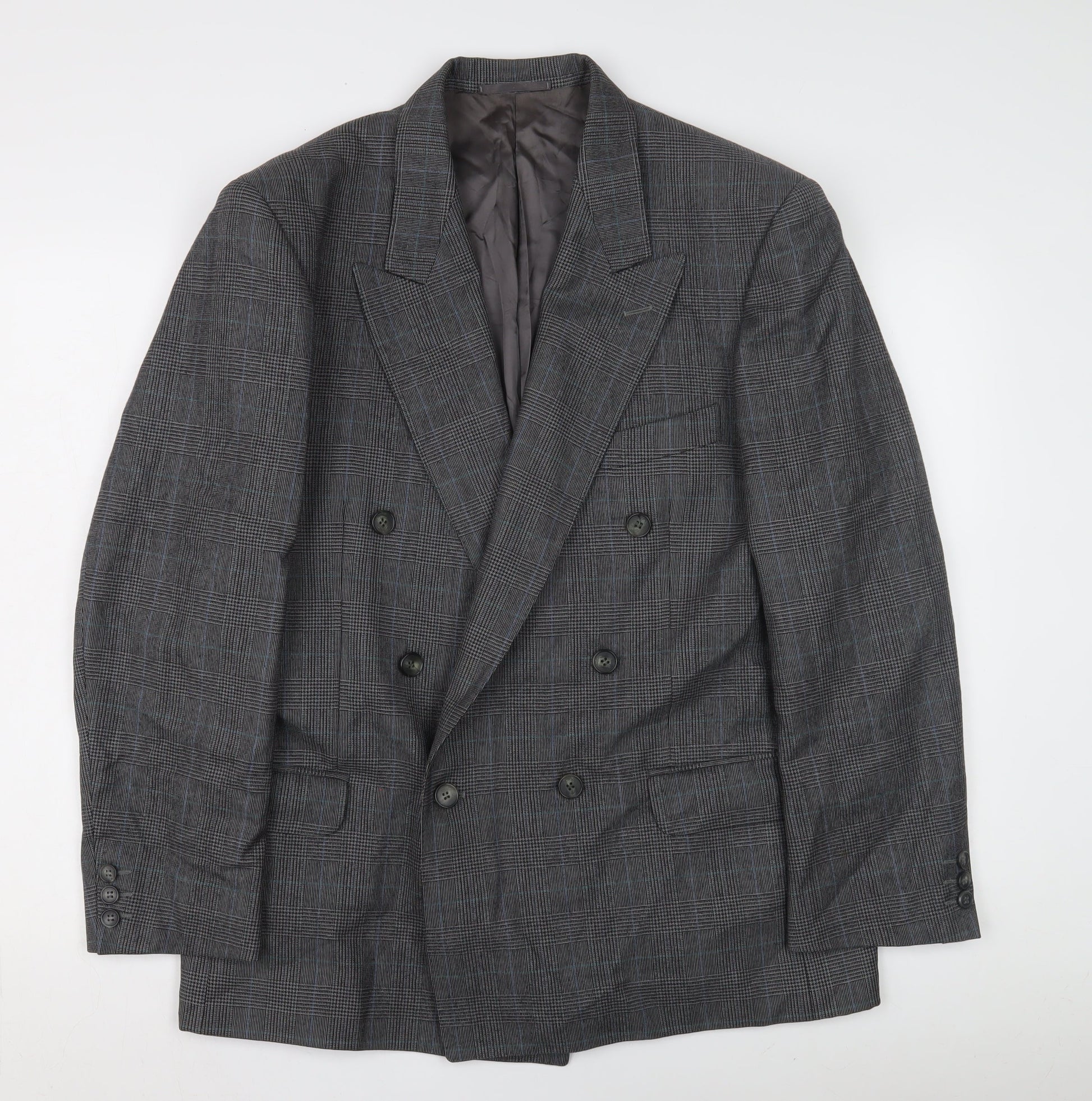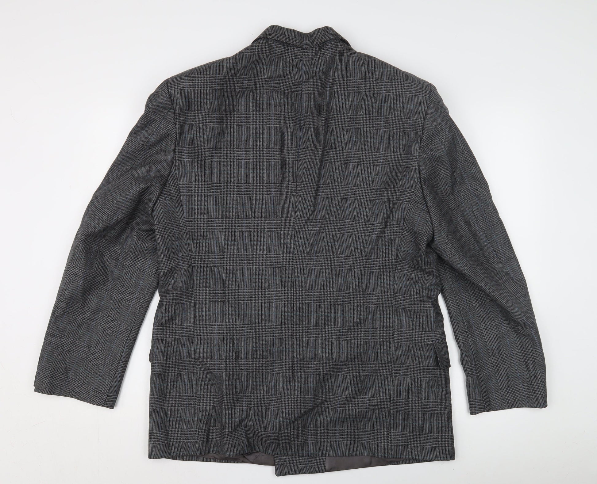 Jaeger Men's Grey Checked Wool Blazer, 52S, Elegant Formal Style