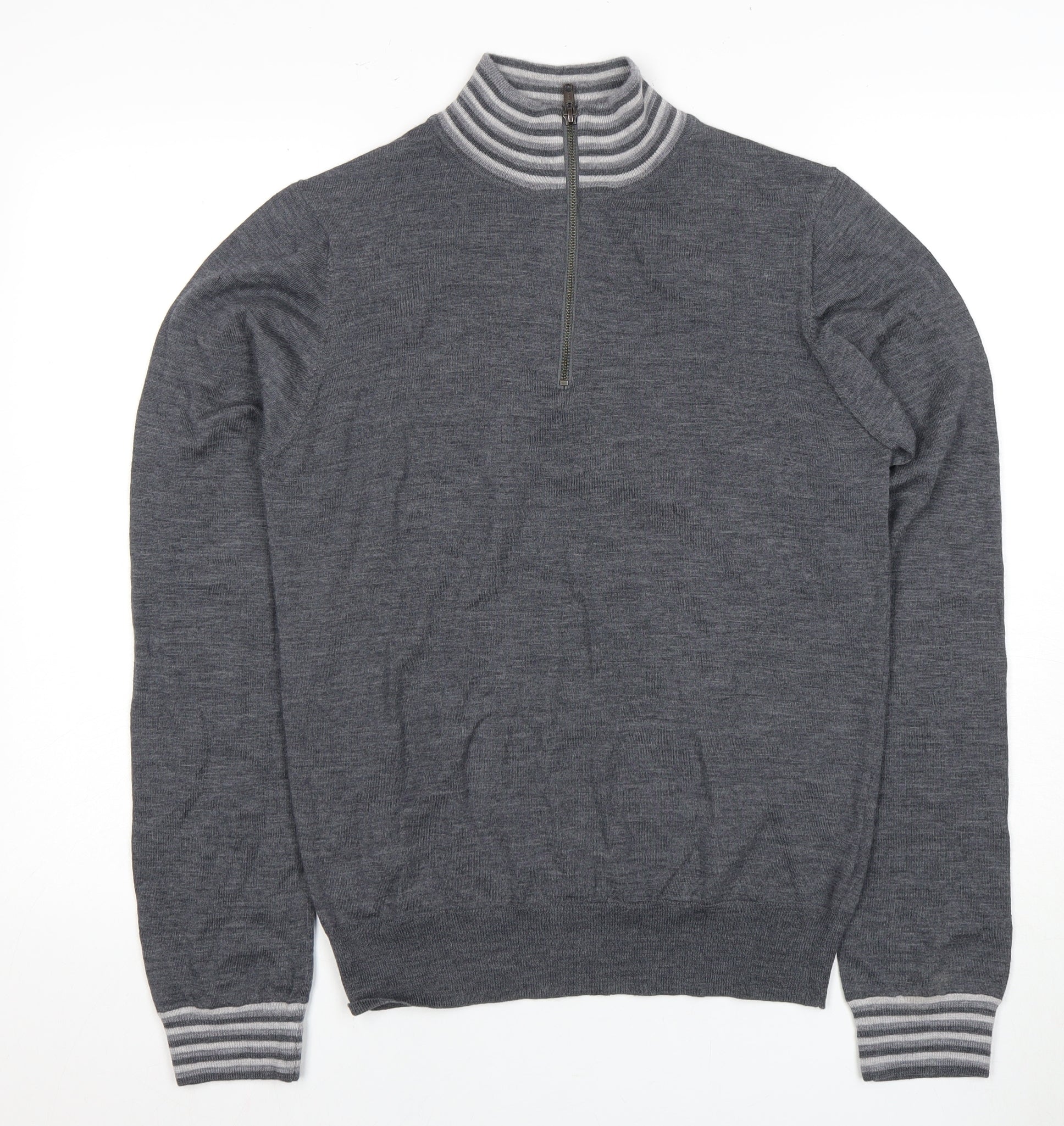 Jaeger Men's Grey Wool 1/2 Zip Jumper - Small