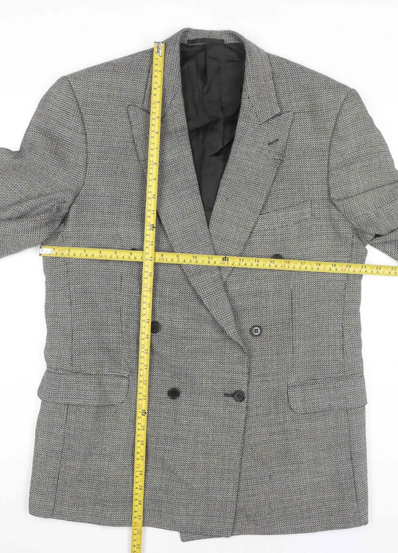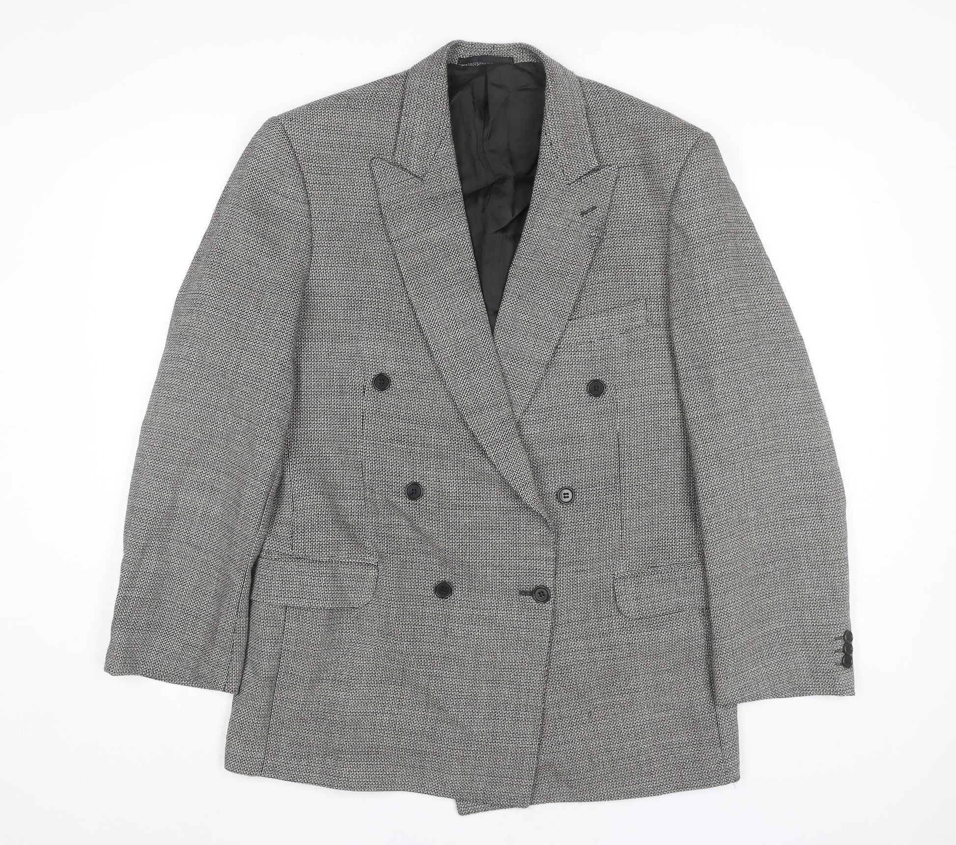 Jaeger Men's Grey Wool Silk Double-Breasted Blazer 52L