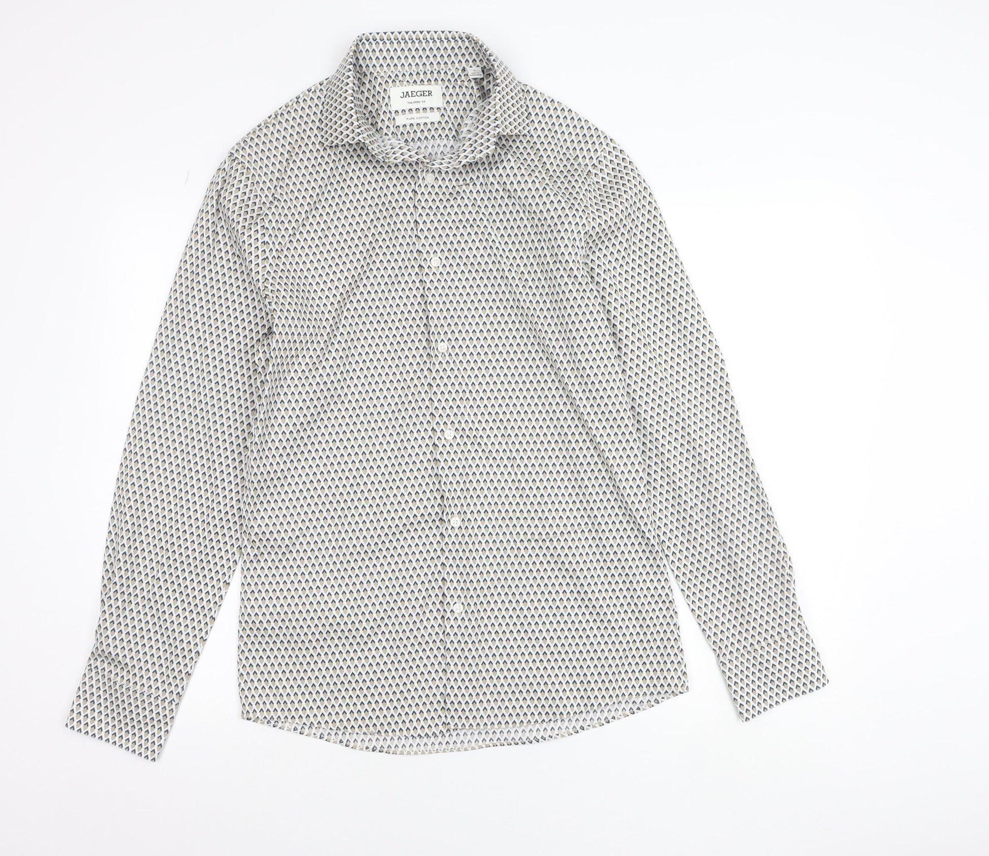 Jaeger Men's Multicoloured Geometric Cotton Slim Fit Shirt S