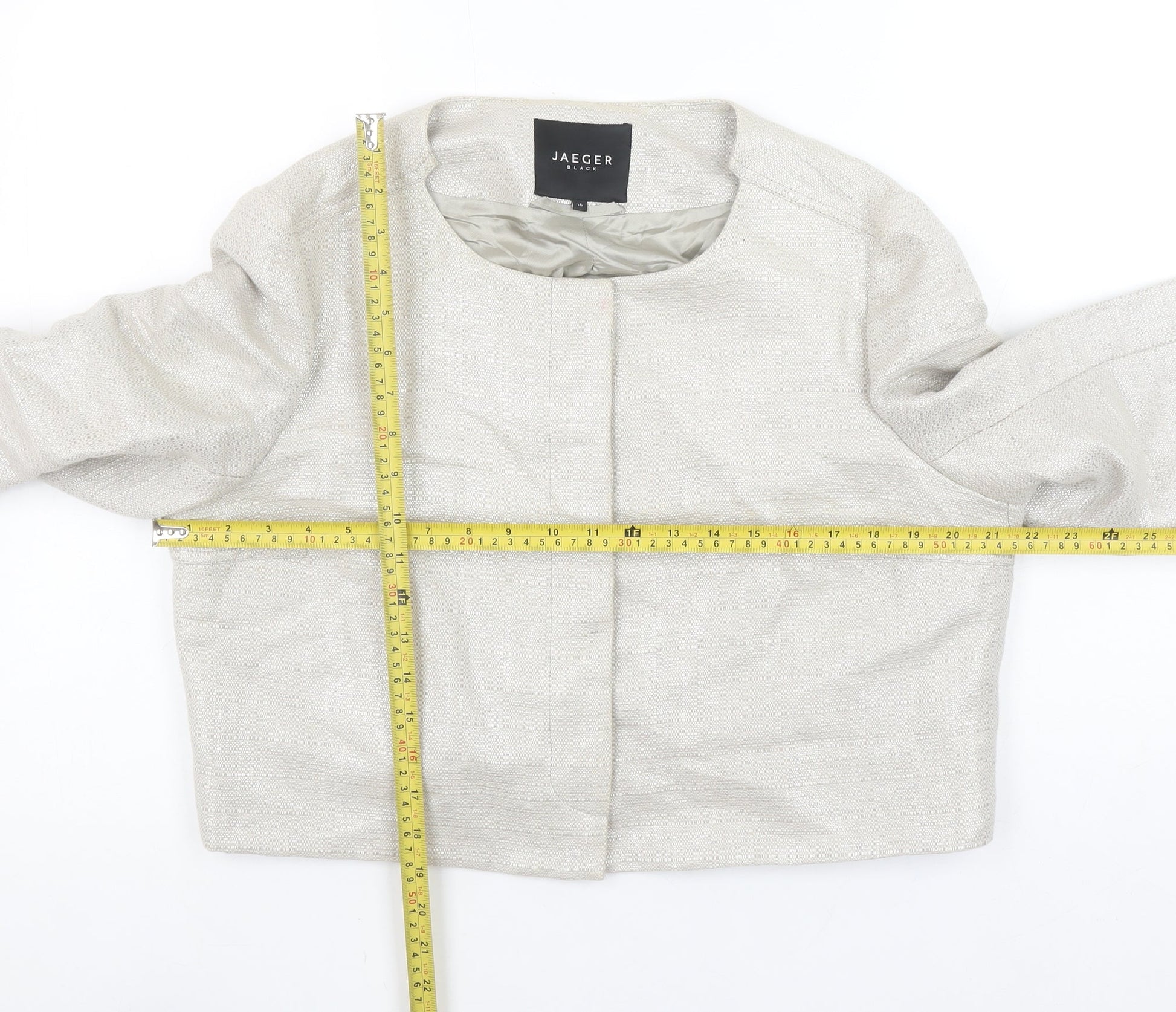 Jaeger Women Beige Linen Blend Cropped Suit Jacket UK16