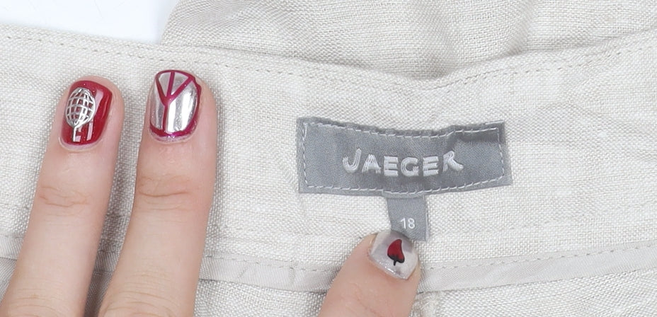 Jaeger Women’s Beige Linen Trousers Size 18 Regular Fit Summer