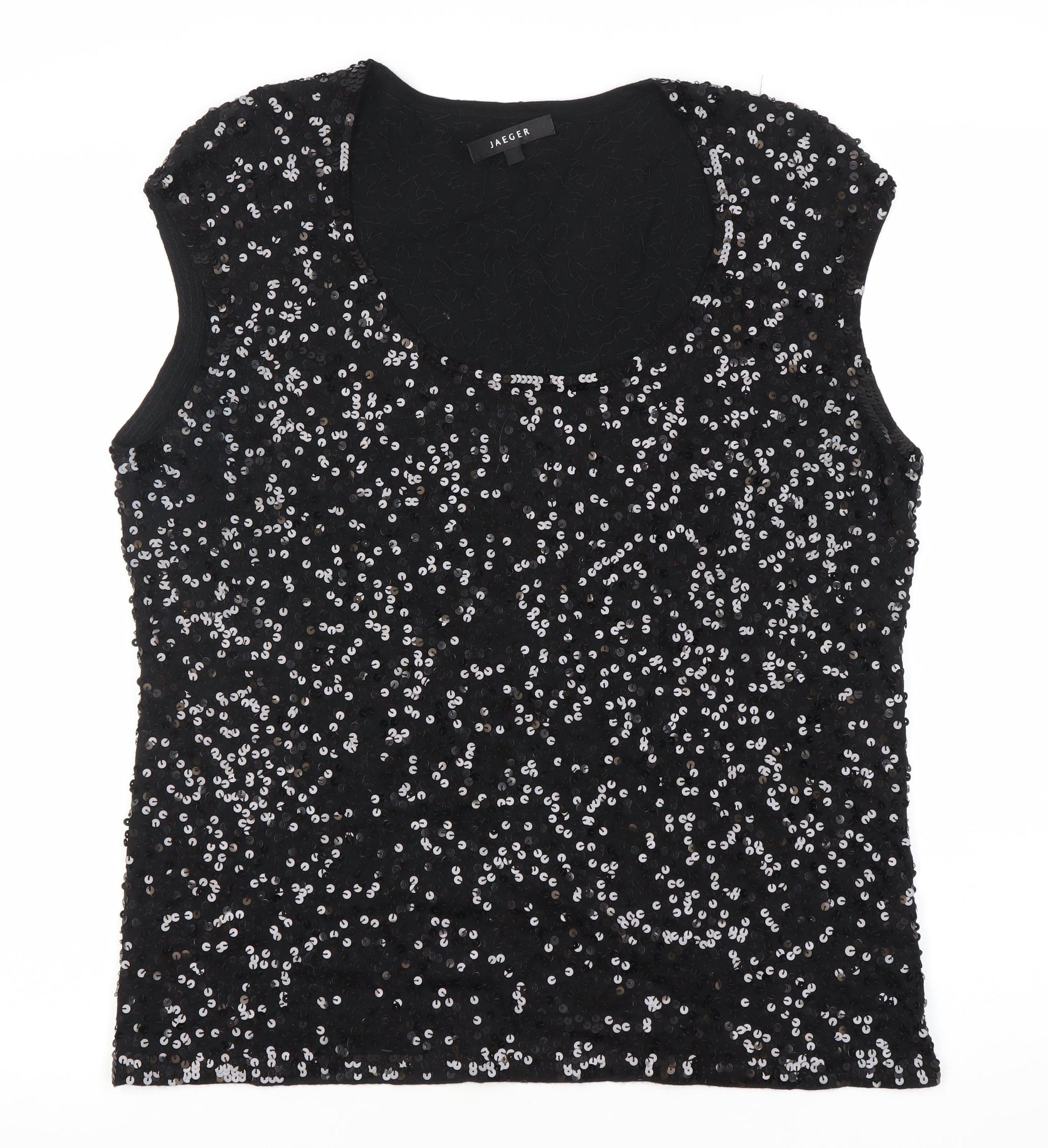 Jaeger Women’s Black Sequin Wool Sleeveless Tank Top XL