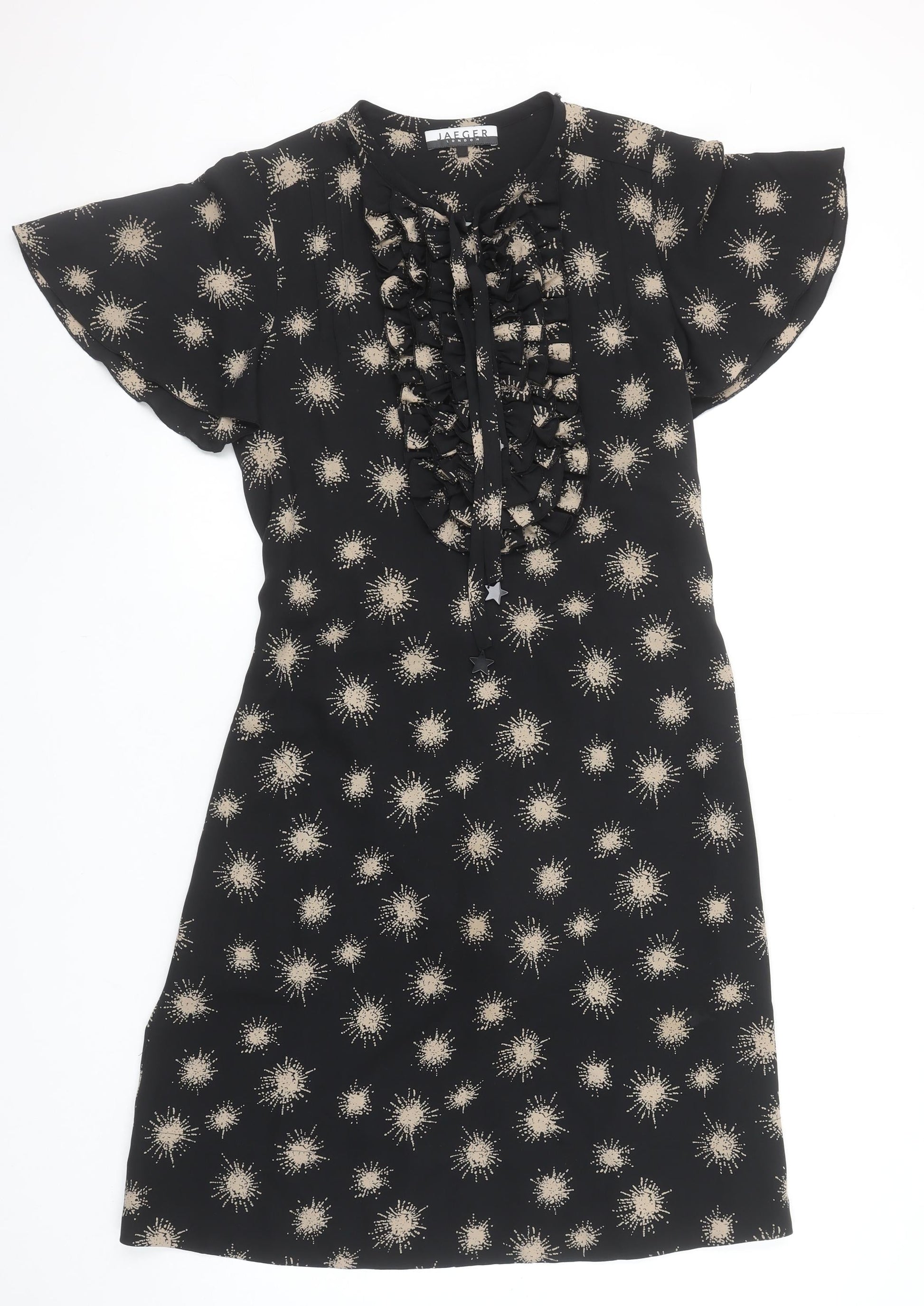 Jaeger Women’s Black Silk Ruffle Shift Dress Size 12