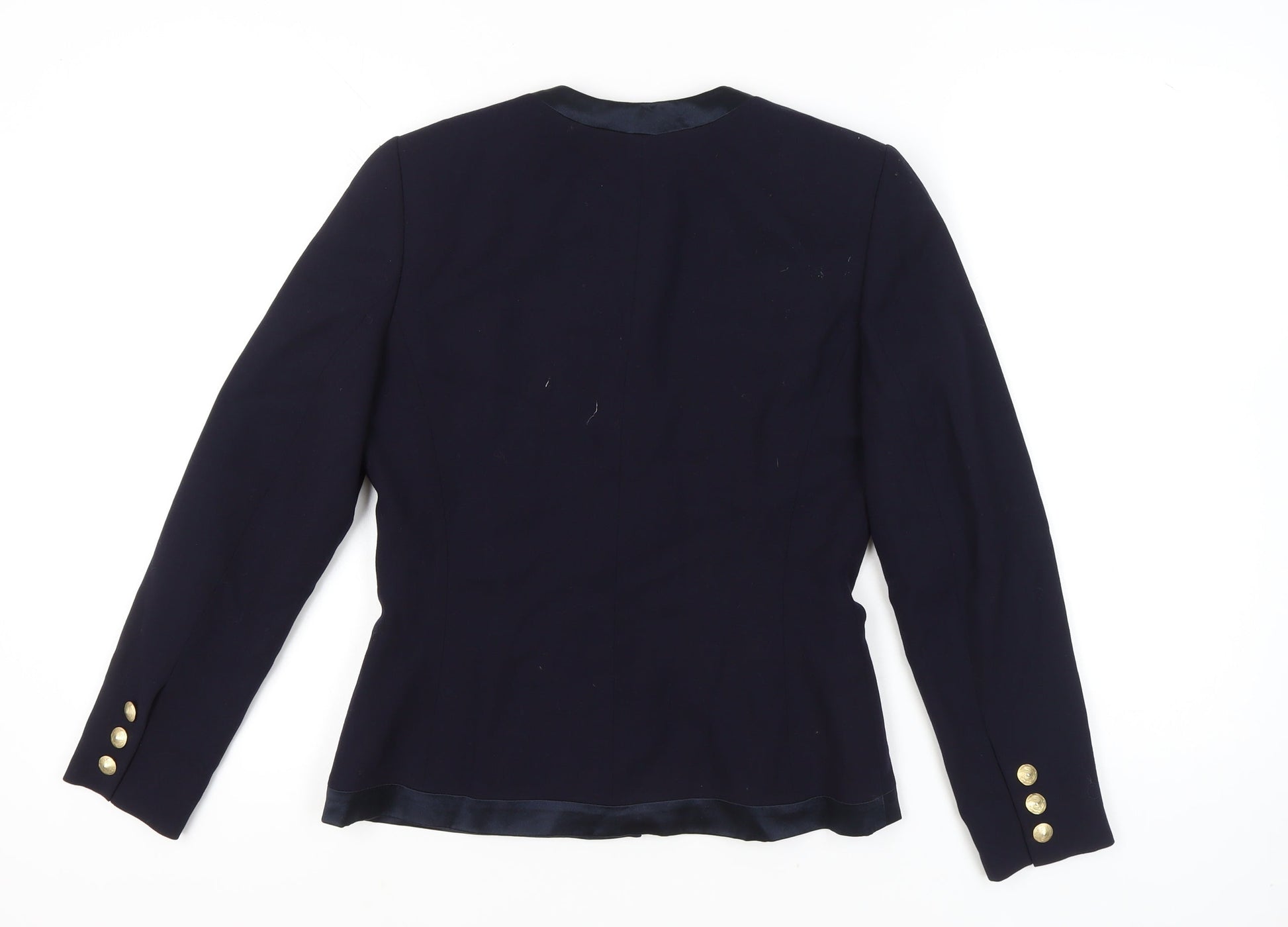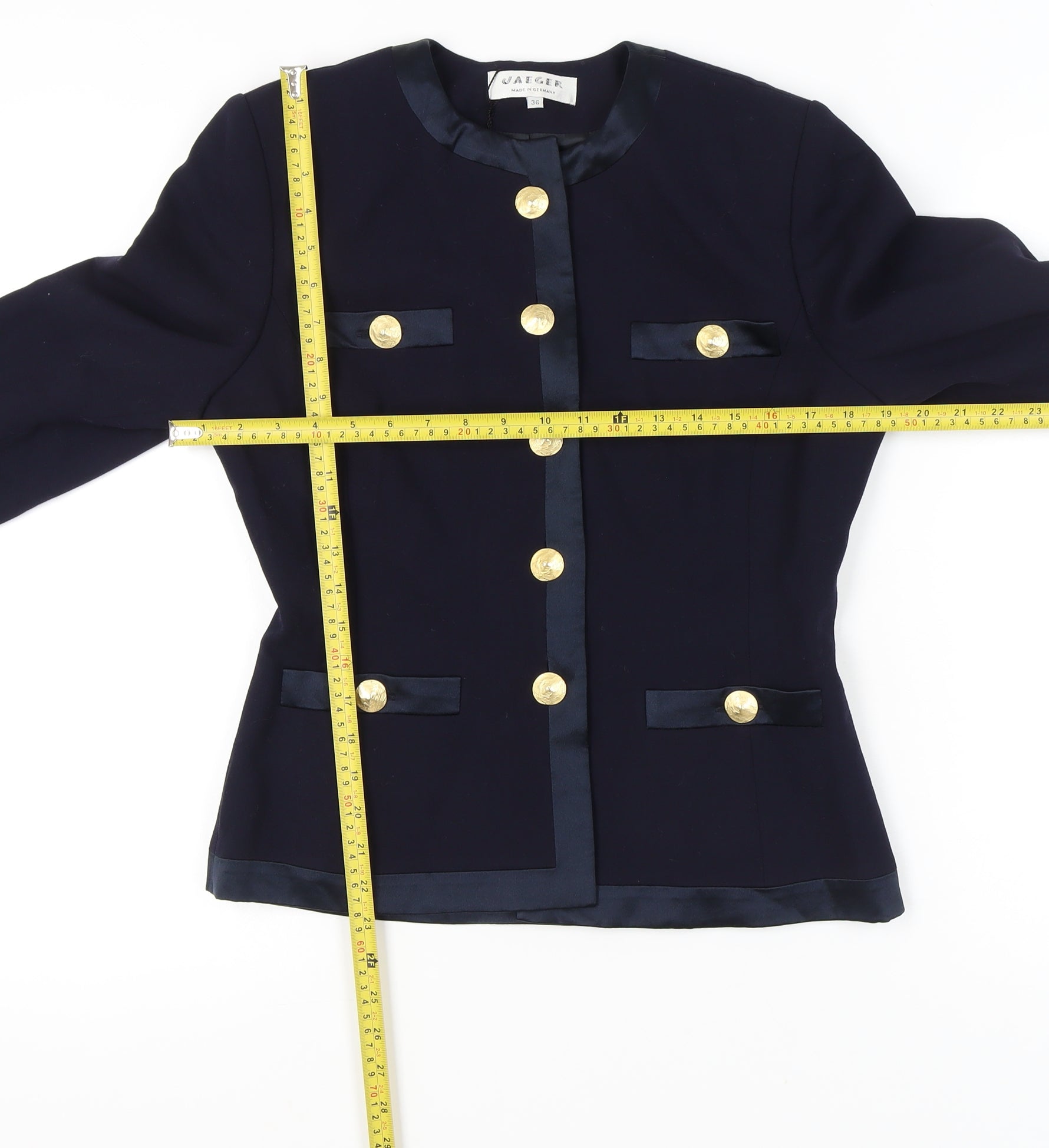 Jaeger Women’s Blue Wool Blazer Size 8 Six-Button Tailored Jacket