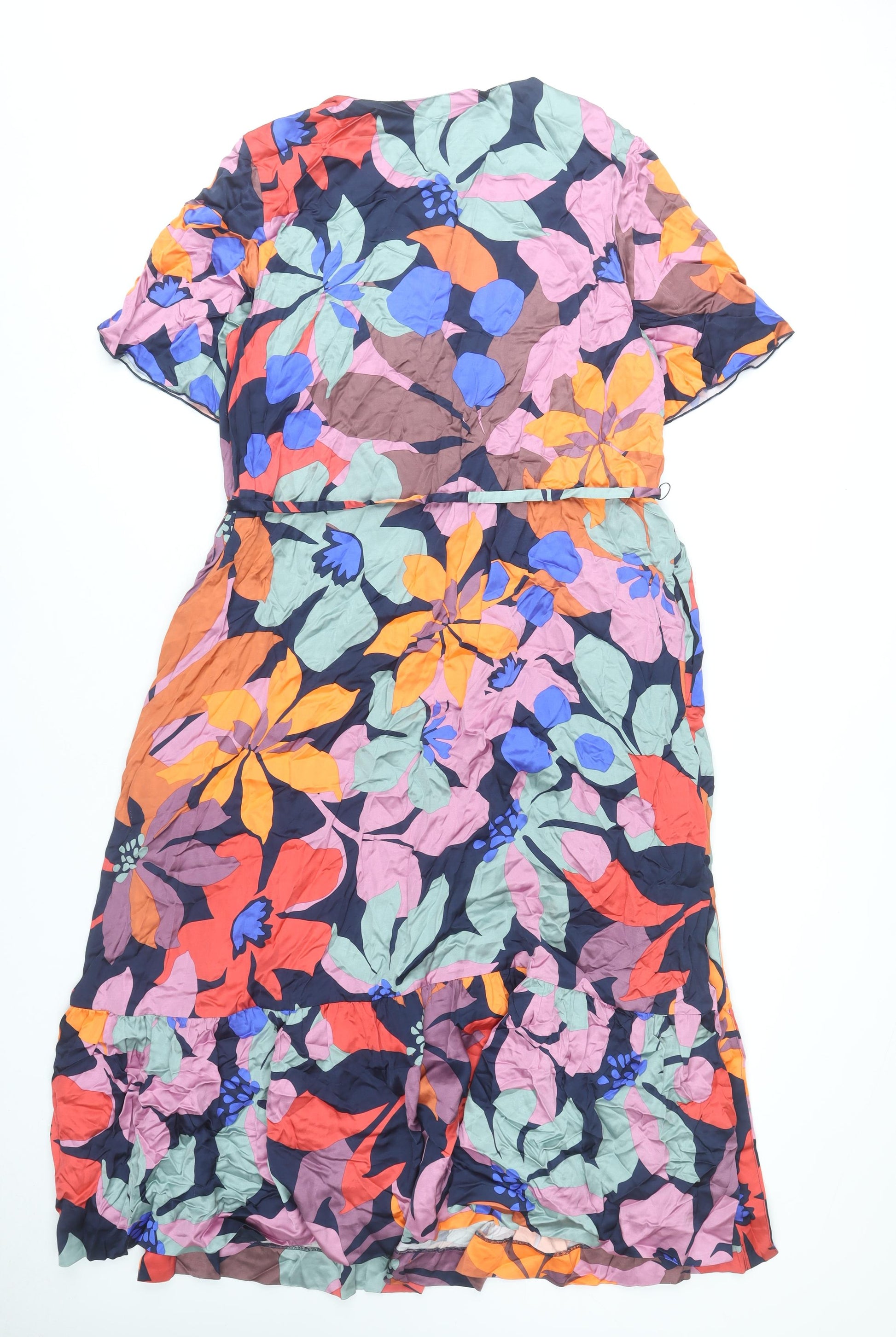 Jaeger Women’s Multicoloured Floral Wrap Midi Dress Size 16