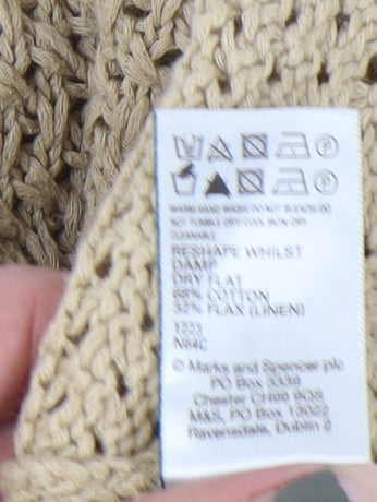 Jaeger Women's Beige V-Neck Open-Knit Jumper M