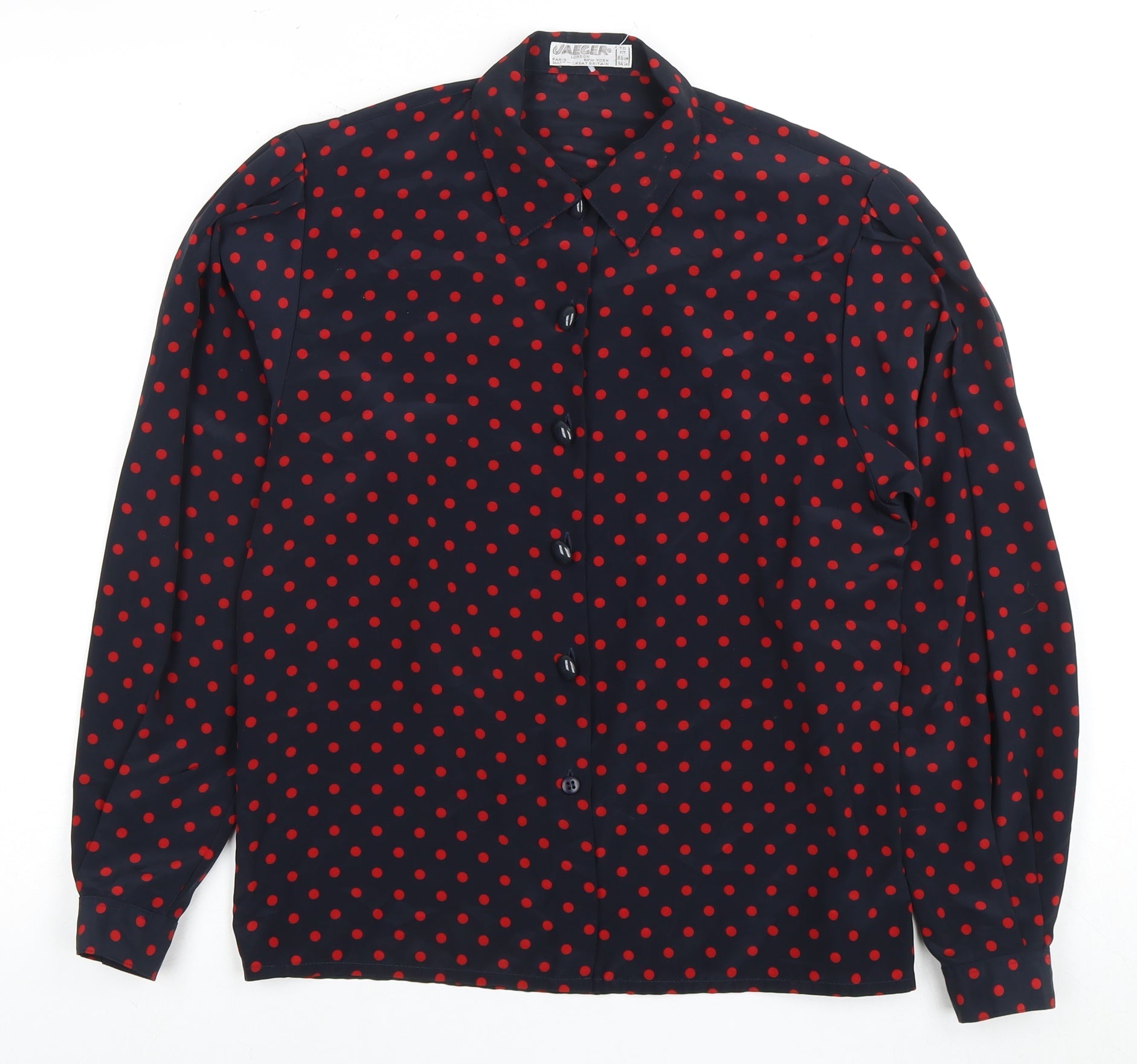 Jaeger Women's Black Polka Dot Button-Up Blouse - Size 12