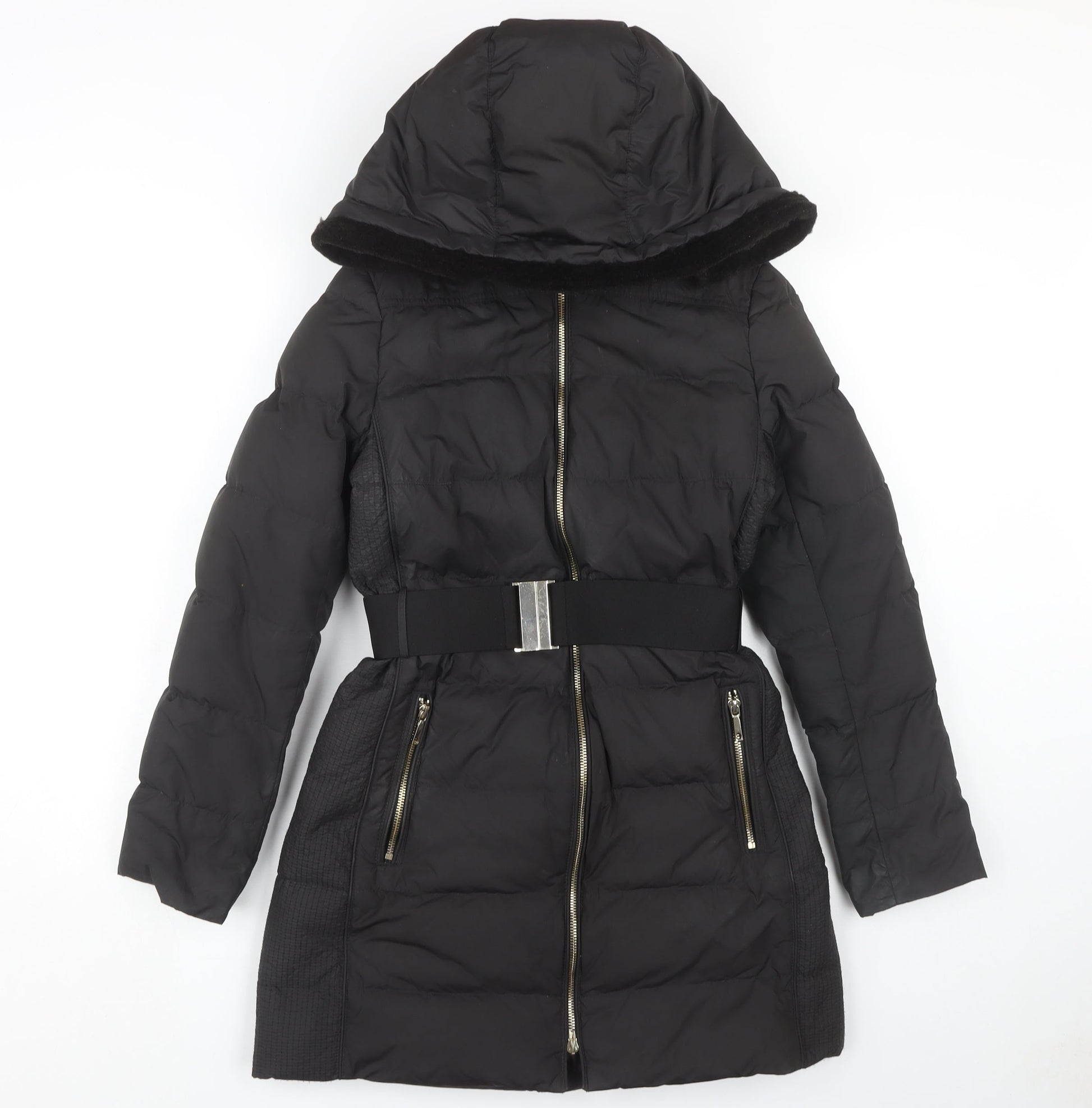 Jaeger Women's Black Puffer Coat Belted Hooded Size 8