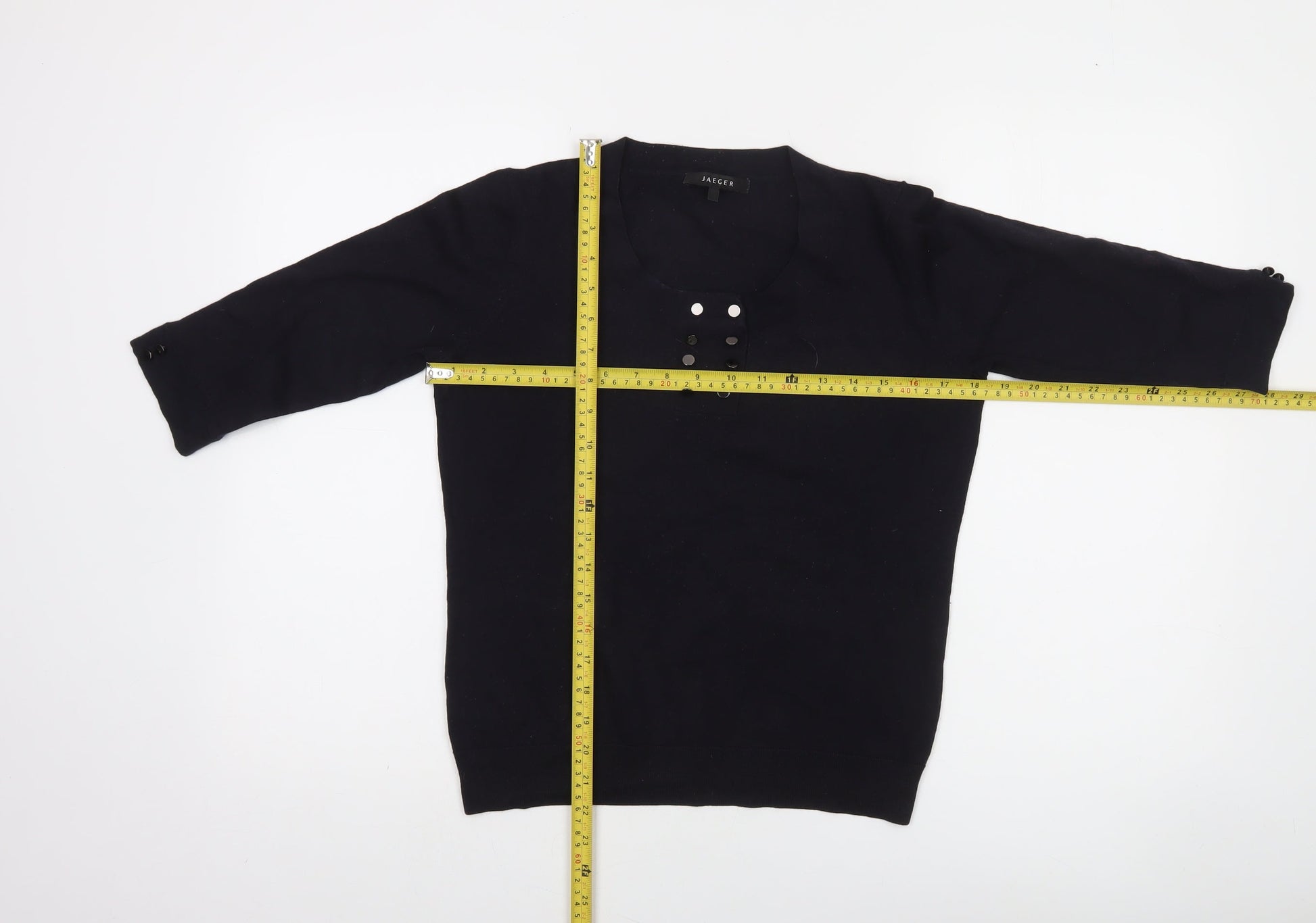 Jaeger Women's Black Wool 3/4 Sleeve Pullover Jumper Size L