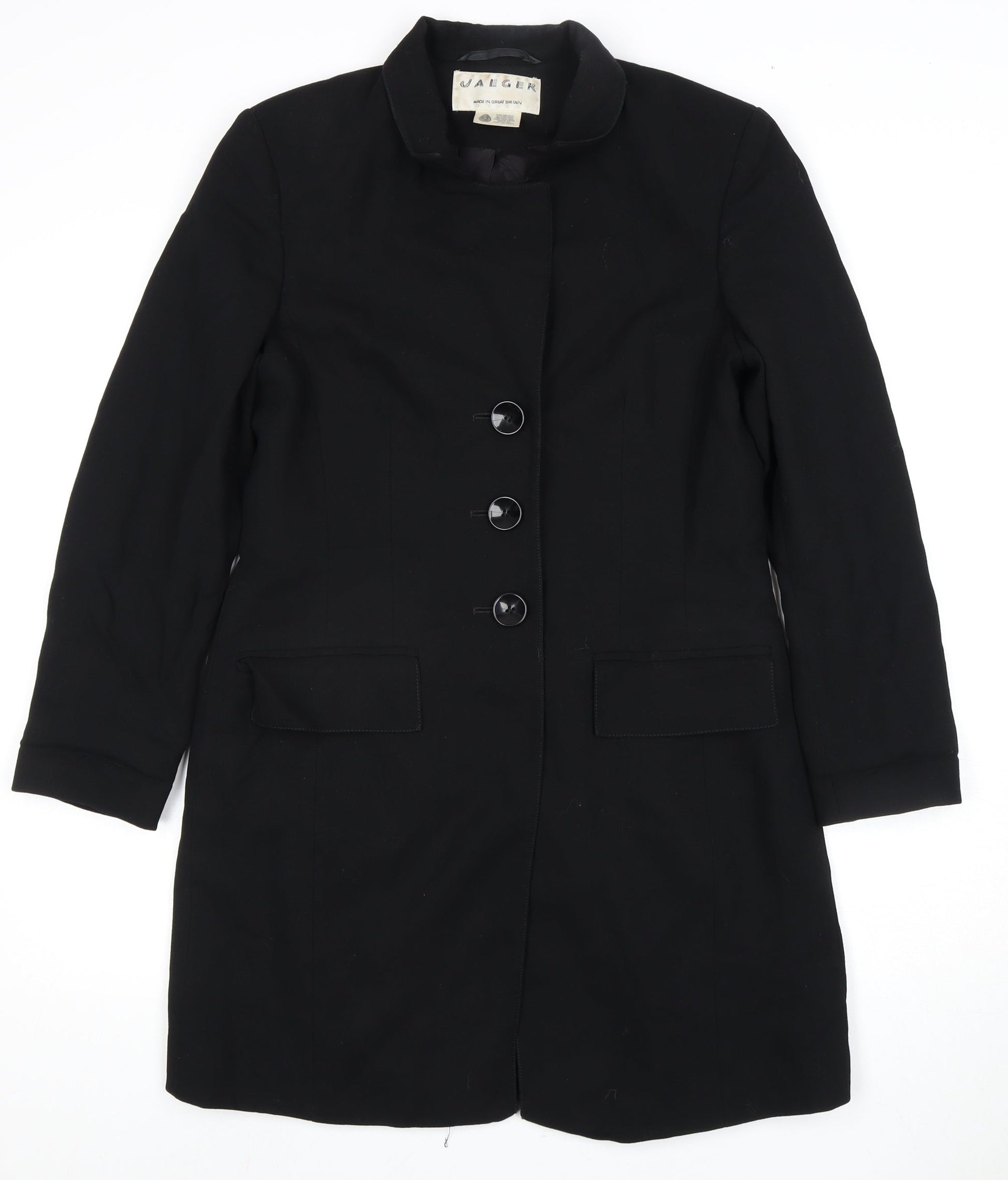 Jaeger Women's Black Wool Overcoat, Size 8, Classic Style