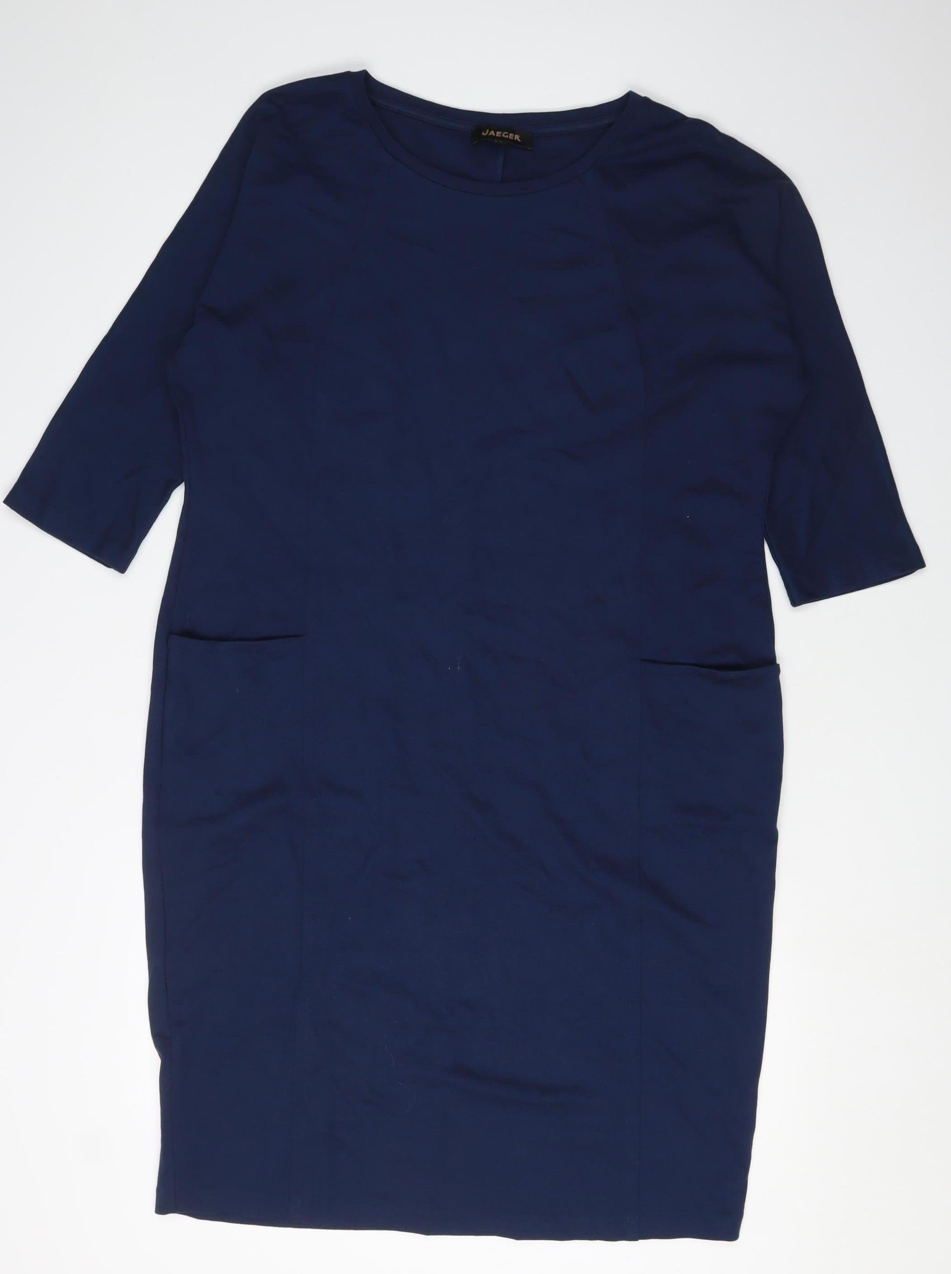 Jaeger Women's Blue Shift Dress M 3/4 Sleeve Casual