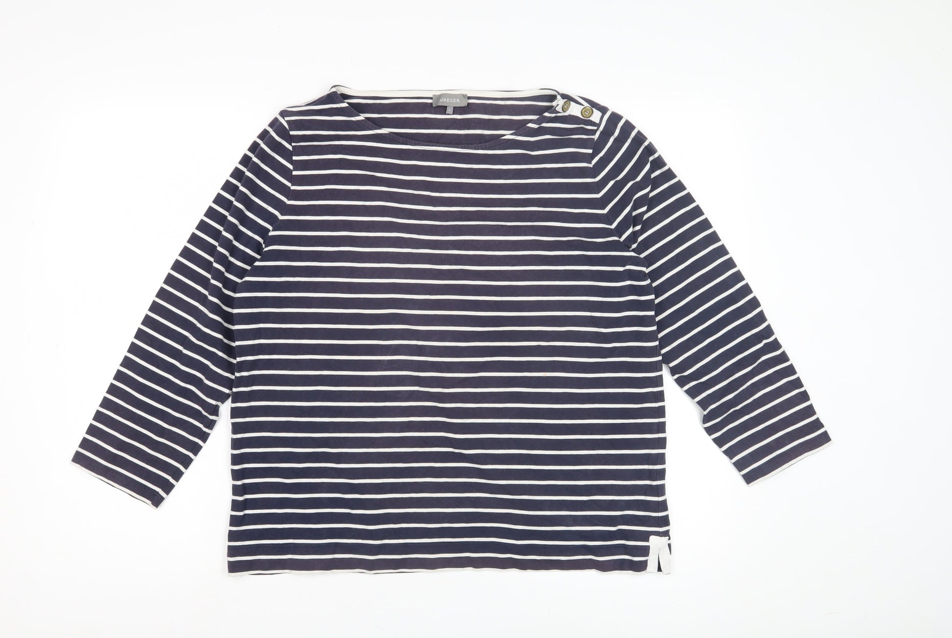 Jaeger Women's Blue Striped Cotton T-Shirt, Size L, 3/4 Sleeve