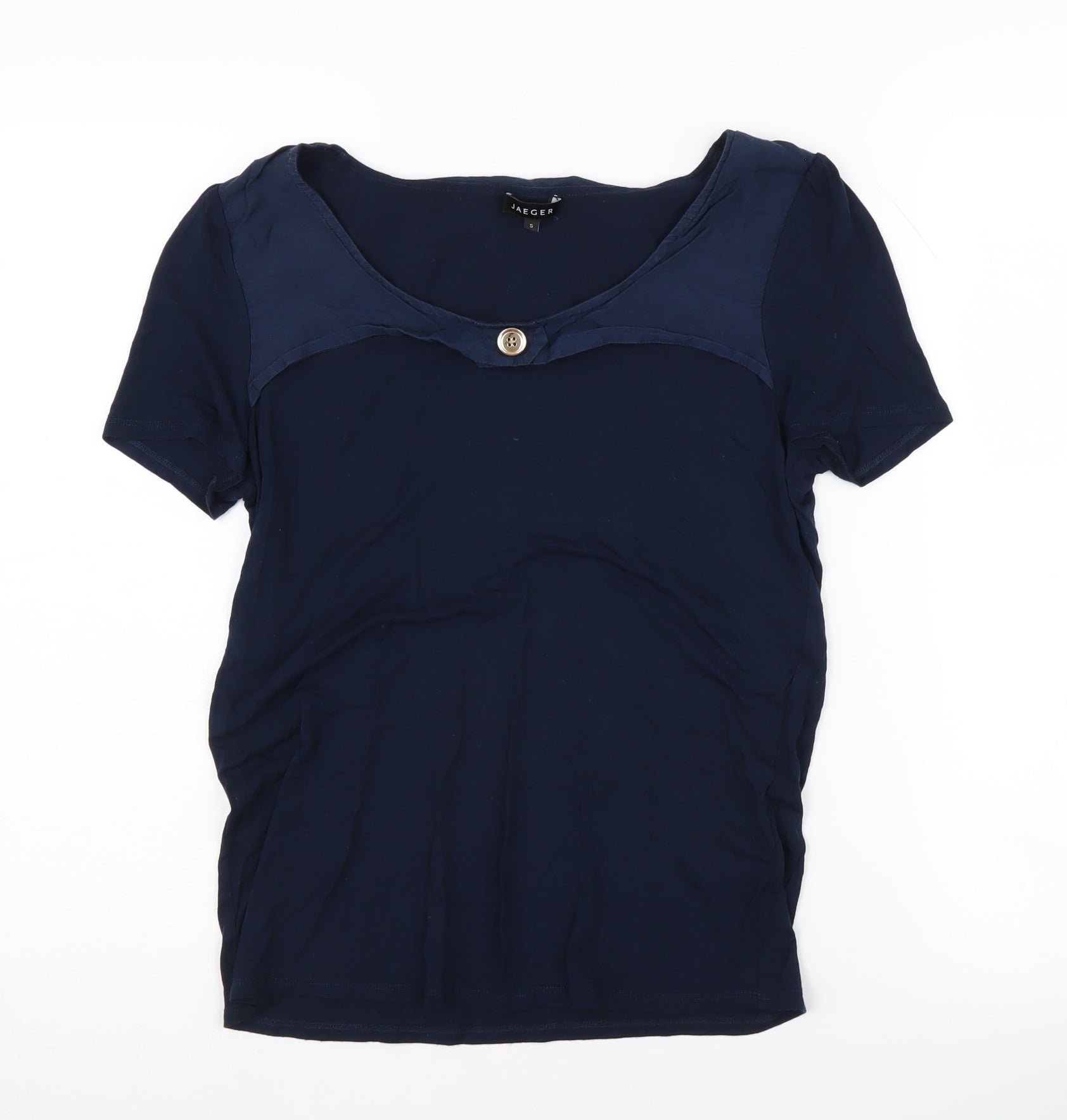 Jaeger Women's Blue T-Shirt S Scoop Neck Button Casual