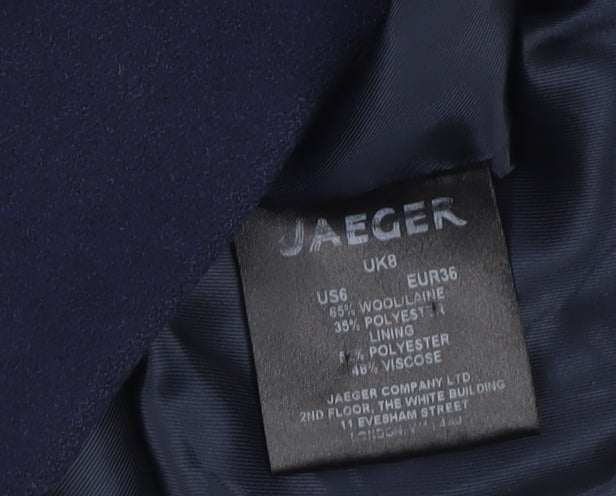 Jaeger Womens Blue Wool Blend Pea Coat UK 8 Workwear Smart Jacket