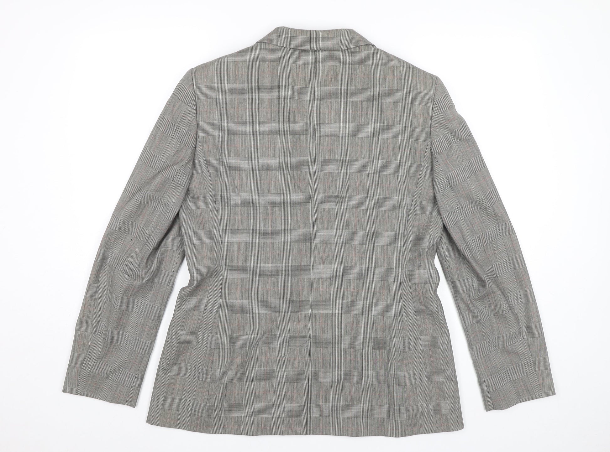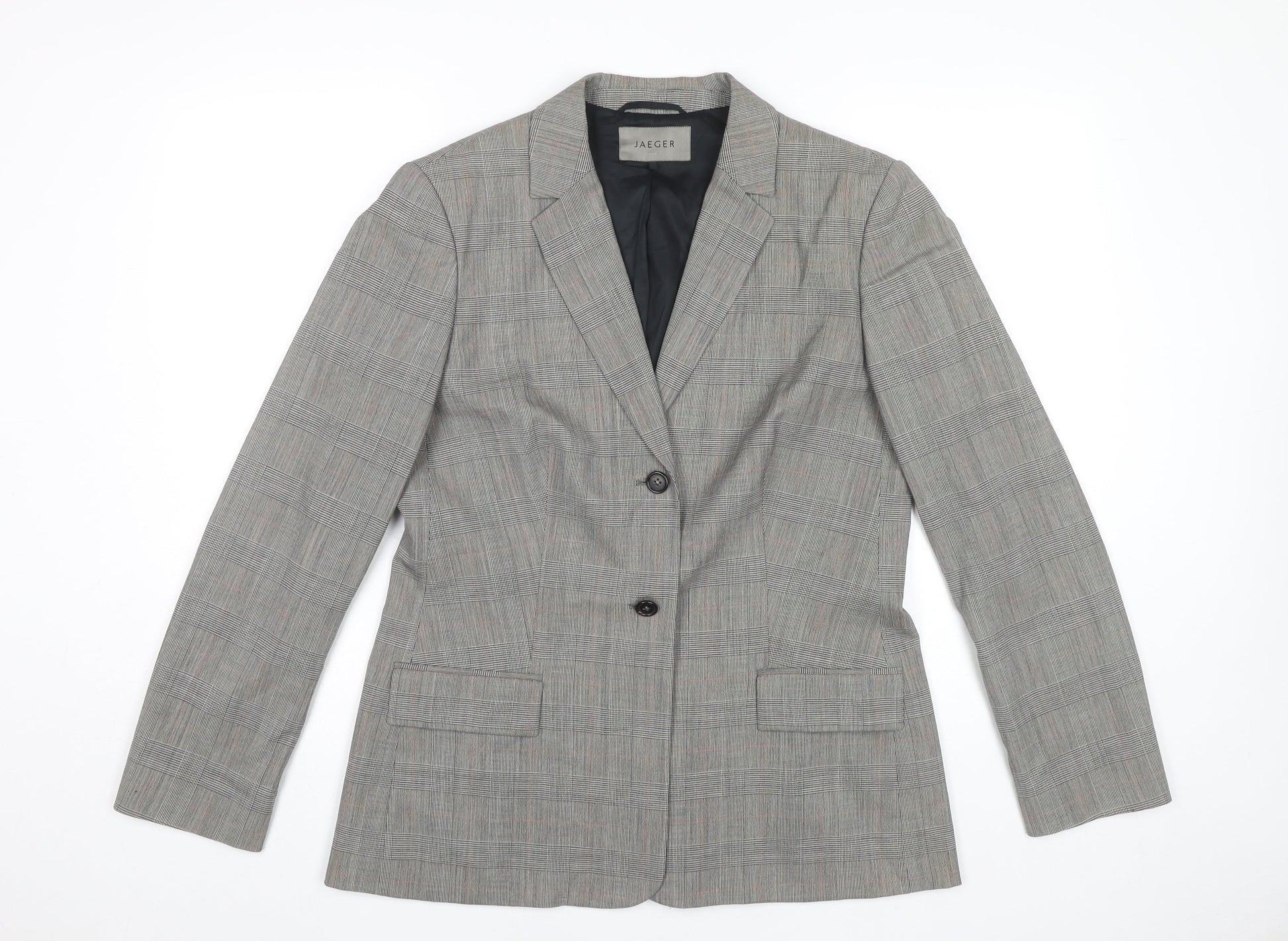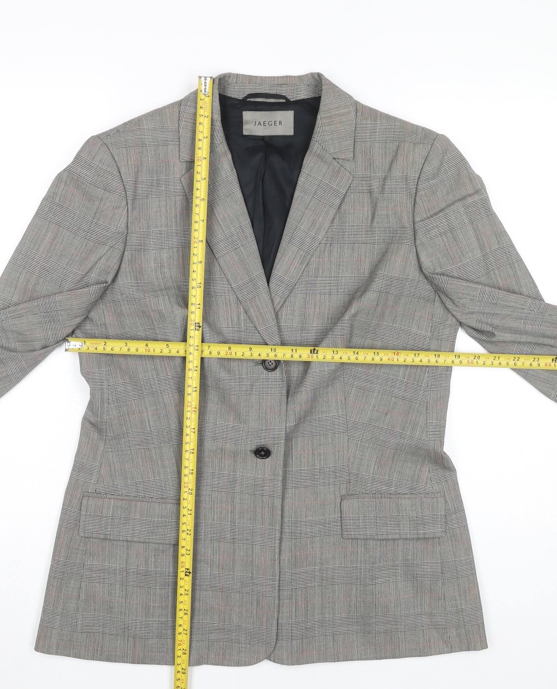 Jaeger Womens Grey Check Wool Blend Blazer Jacket Size 12