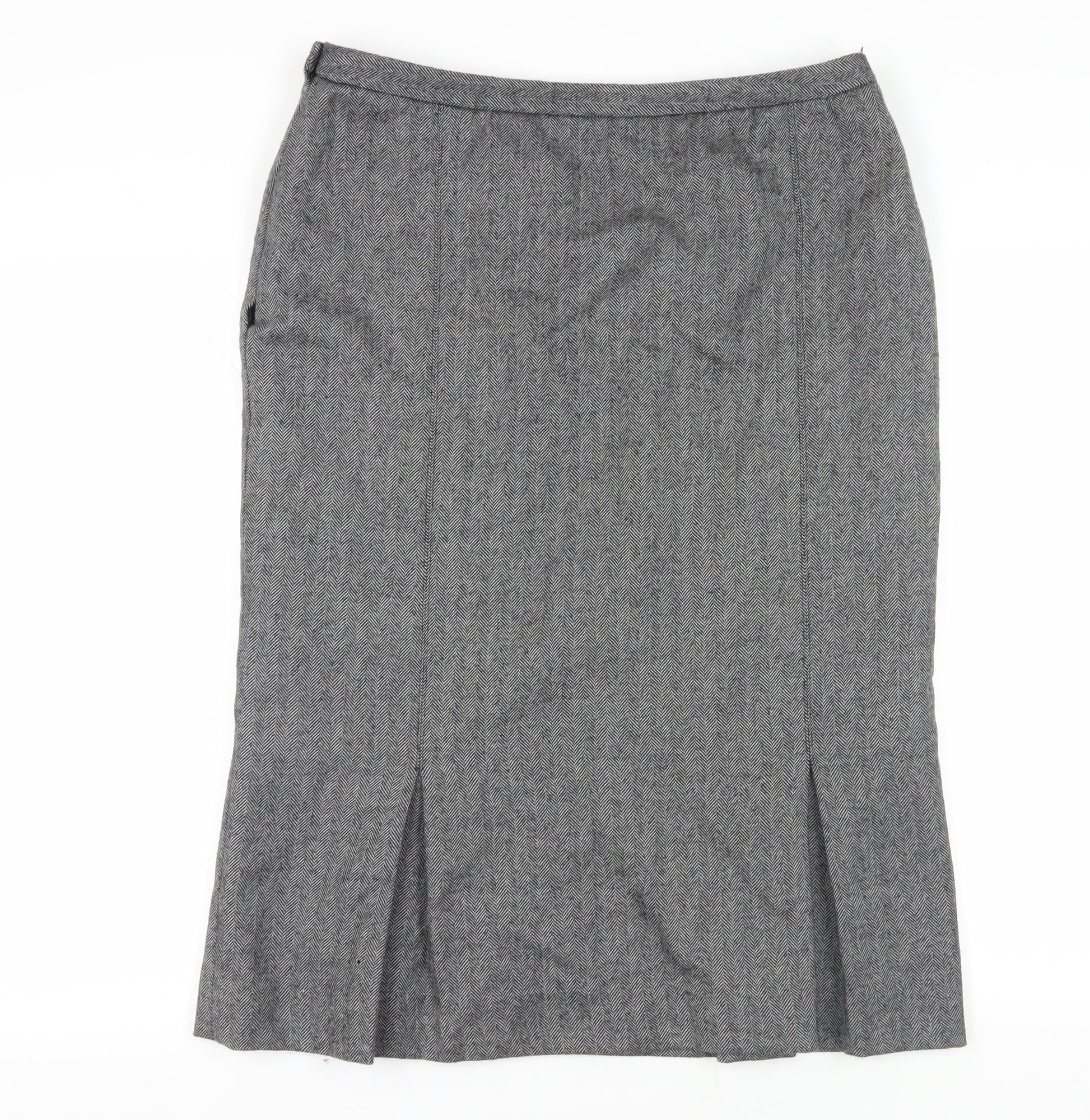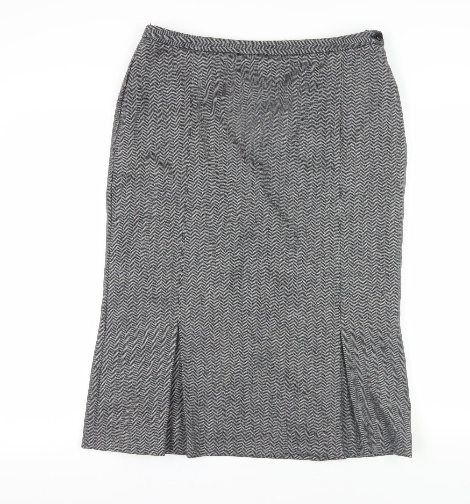 Jaeger Women's Grey Herringbone Wool Pencil Skirt