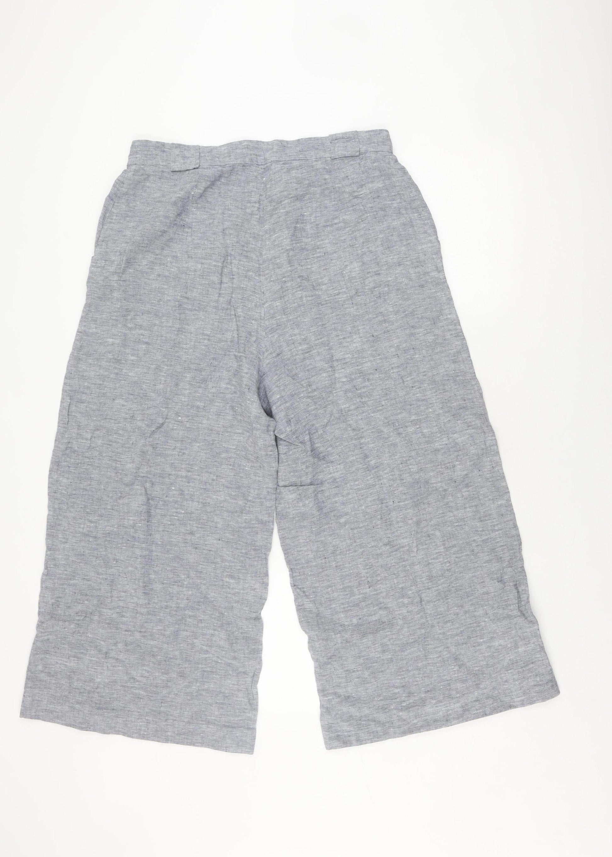 Jaeger Women's Grey Linen Wide-Leg Trousers, Size 14